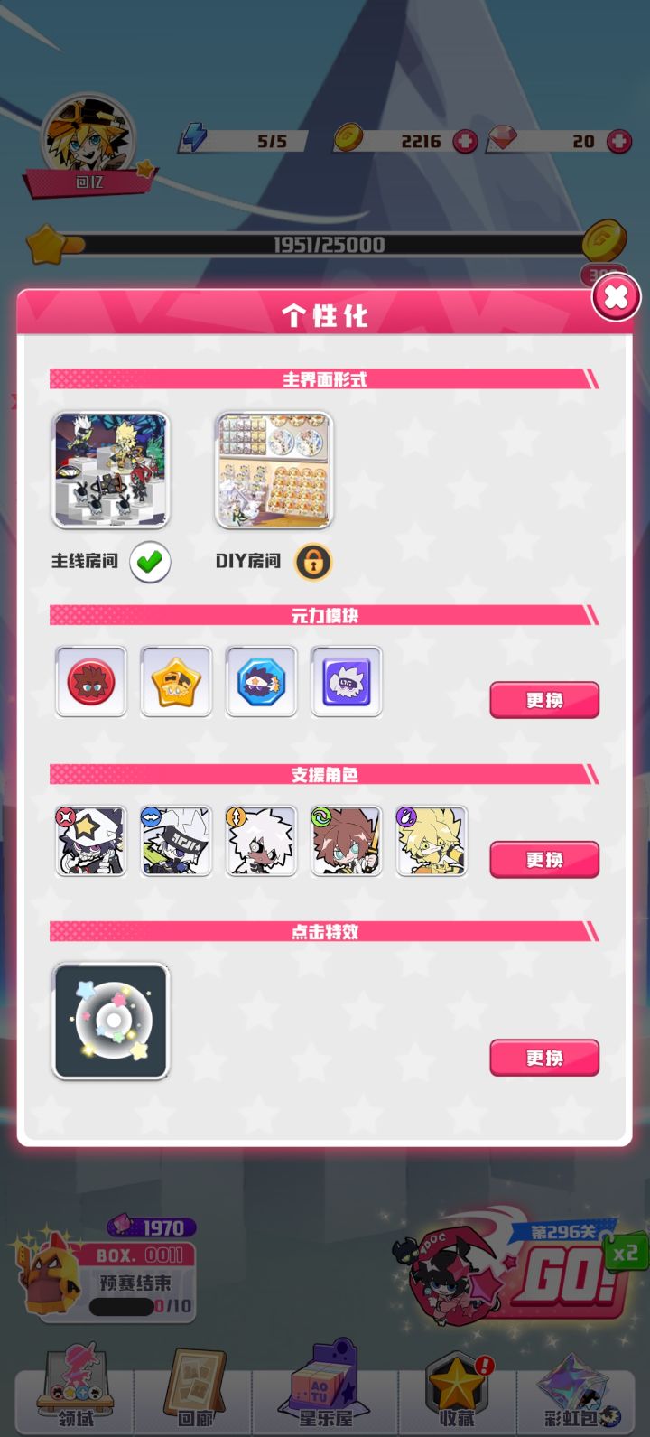 集齐主题卡池,可以获得更多可更换的元力模块。在☆中点击可更换。点击特效更换目前只有购买《元力修练手册》才能获得(目前镭射票也是)