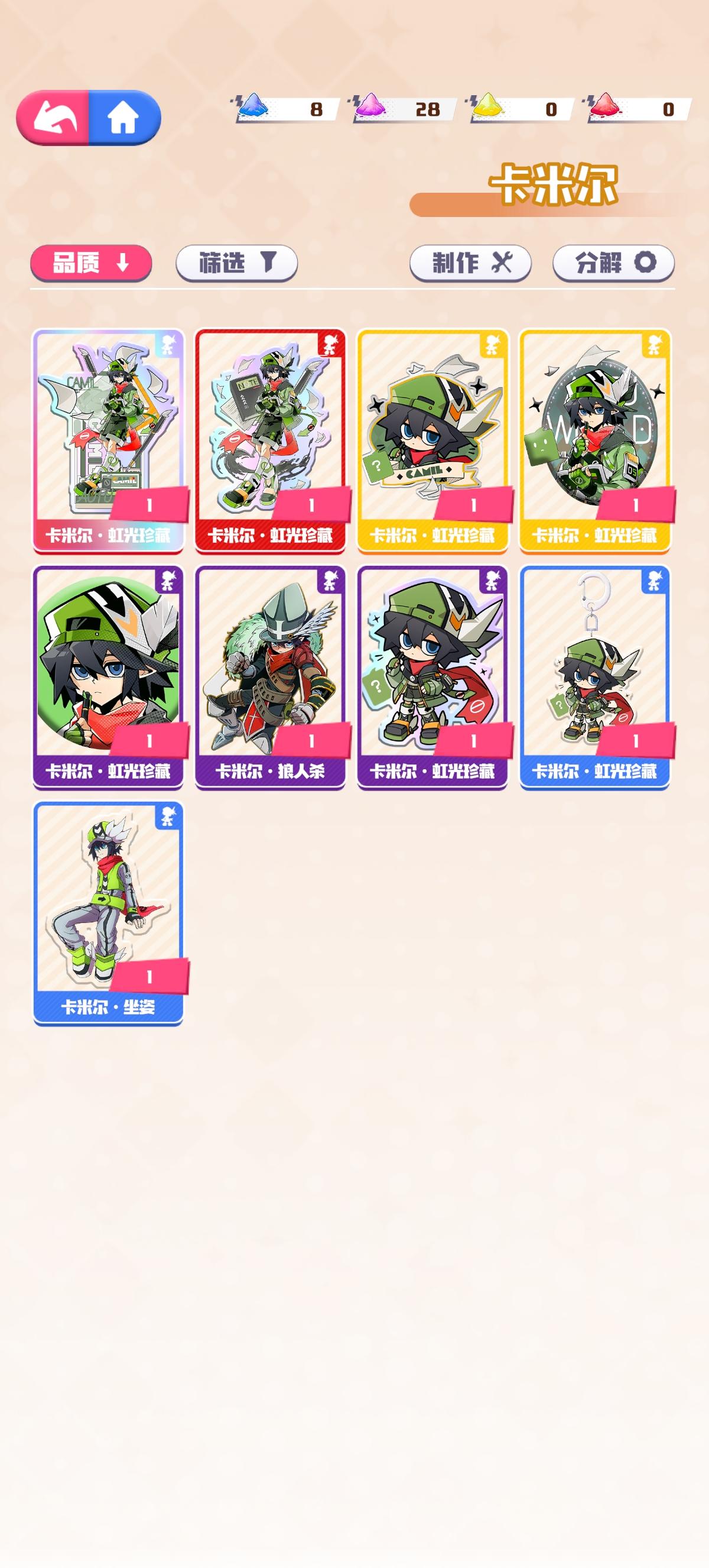 这个玩法很好,消消乐+赛博吃谷相比于其他的消消乐还给玩家一个准确的目标,不再是爬塔那样去打无限关,而是攒资源换赛博谷。刚开测试bug还是比较多的,比如在设置名称那一块点叉号退不出去,或者是消消乐消一半突然卡顿,尽快改一改这些小毛病。一直很喜欢凹凸世界,但是无奈官方完全不管手游和寻光,线下谷子也少的可怜基本看不到,这样一个即可以看到喜欢的角色又能吃到谷子的同人还是很推荐的