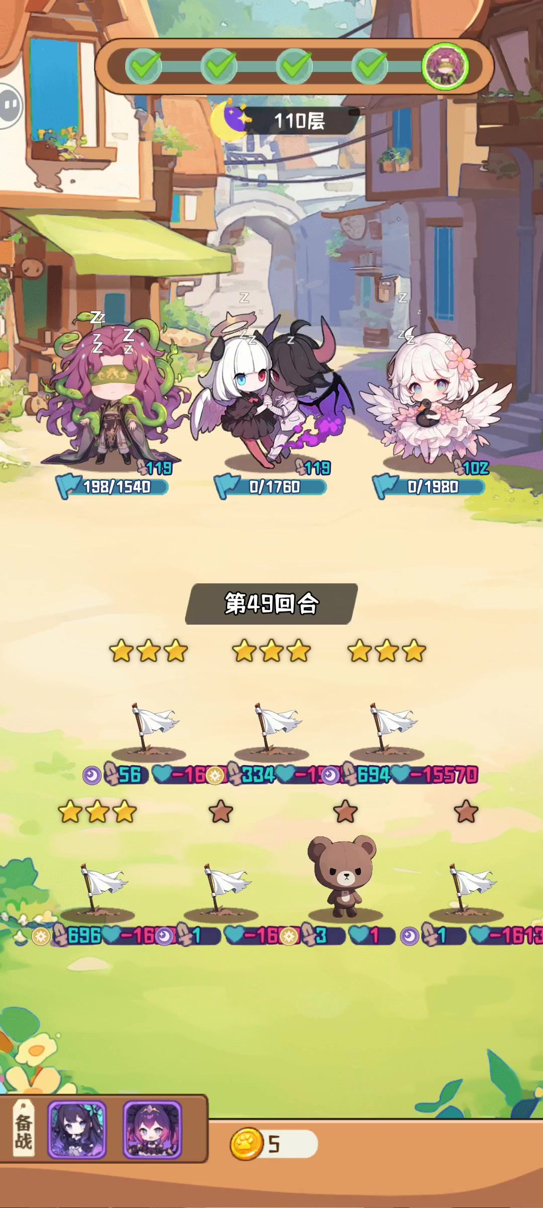 主要机制是吃休眠不会放技能。 核心 三月兔:挨打两次会随机控制两个怪,养成:满星 白狐:打兔子,养成:一星 露比:核心输出,养成:二星 辅助 布兰妮:有没有都没事,有最好。养成:满星