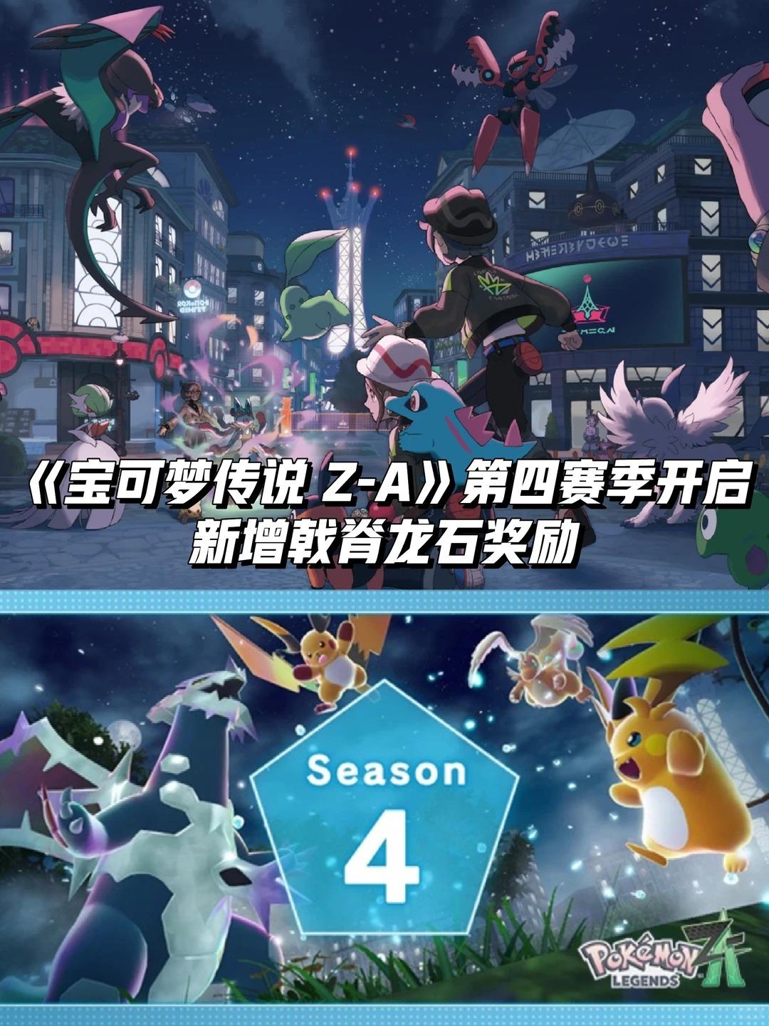 《宝可梦传说 Z-A》排名对战第四赛季将于北京时间2025年12月18日14:00正式启动,持续至2026年1月8日09:59。本赛季沿用3只50级宝可梦的3分钟限时对战规则,可用宝可梦包括密阿雷图鉴与"超次元爆涌"DLC超空间图鉴品种,但禁用超梦、烈空坐等29种传说宝可梦。玩家达到S、U、W、Y段位可分别解锁超级戟脊龙、超级布里卡隆、超级妖火红狐、超级甲贺忍蛙的对应超级石,各段位还将发放金色王