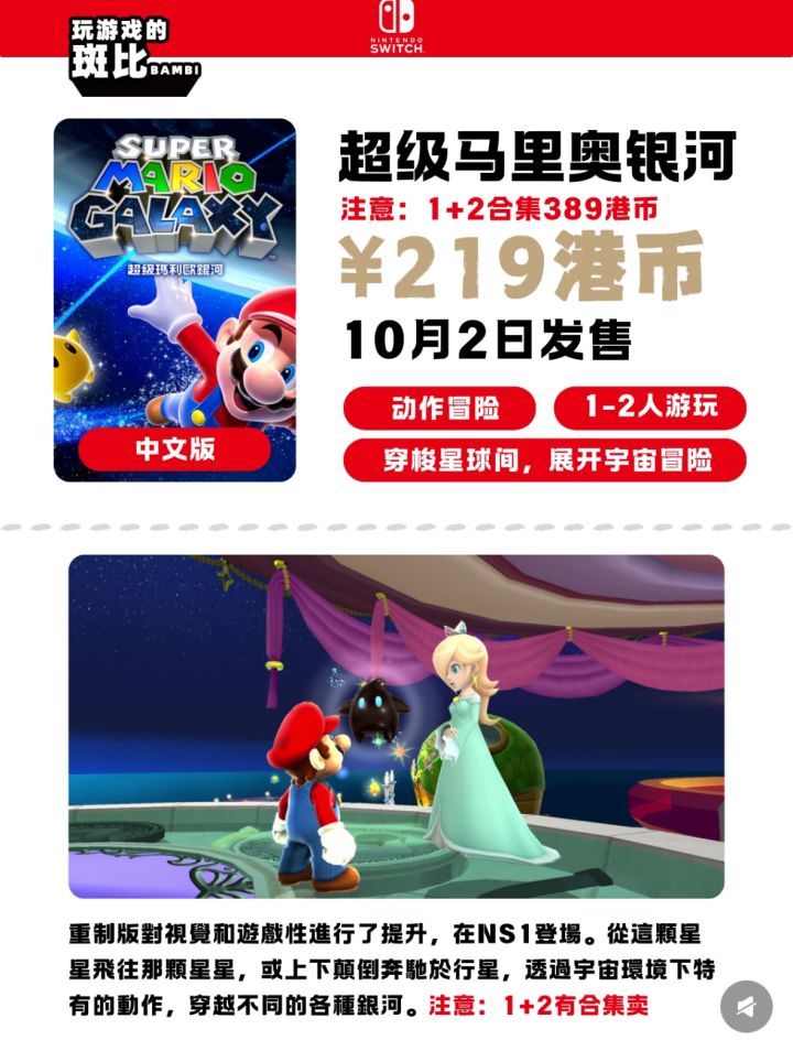 10月switch1第一方游戏有宝可梦ZA和马里奥银河1+2坐镇,第三方有小小梦魇3、舞力全开2026、无尽传说、勇者斗恶龙1+2,属于可以不吃灰的状态了,其中马里奥银河虽然是老游戏重置,但还是switch1独占状态,游戏目前并没有switch2升级版本。宝可梦ZA即便拥有switch2还是建议购买switch1版本卡带,因为可以50港币升级2代版本,叠加后与直接购买2代版本价格一致,如果后续出二