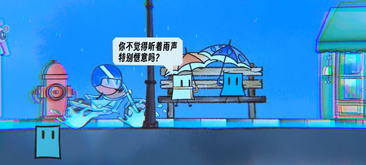 我真的挺喜欢这种治愈的风格,虽然说有几次没有注意到自己的雨伞已经要废掉了,但是他每次都可以在特定的节点复活而不是说从头开始,不过这个要有点理解力,游戏经验不太足的人玩,一开始会不太懂这个雨伞的意义