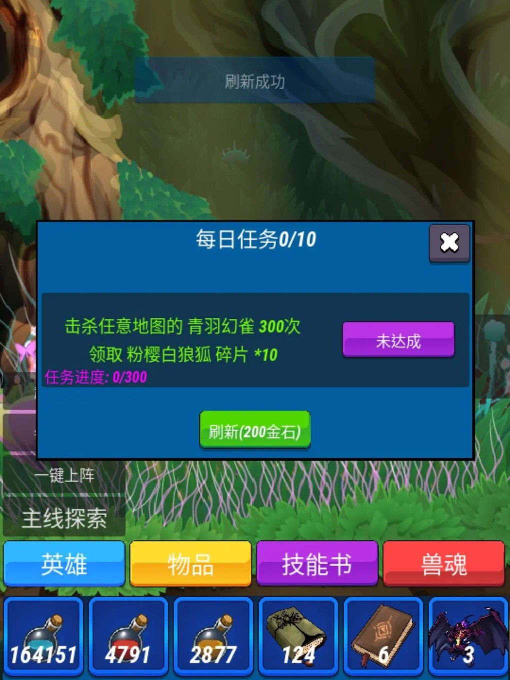 橙色英雄查看,菜单 英雄商城 闪着橙色的边框,目前商城有2位,一位是骷髅魔君 拥有2个羁绊技能,一位是粉樱白狼狐, 都是强力英雄,等级上线较高,建议先获取骷髅魔君英雄 需要主线探索到一定关卡解锁,屏幕右上角会显示挑战字样 点击选择 魔窟之地,这里掉落橙色英雄骷髅魔君的同时,也会掉落兽魂骷髅魔君,同时爆书的概率也会提高,主要目标就是一位橙色英雄,一位橙色兽魂,这些拿到之后上阵升级,快速发育,为后面获