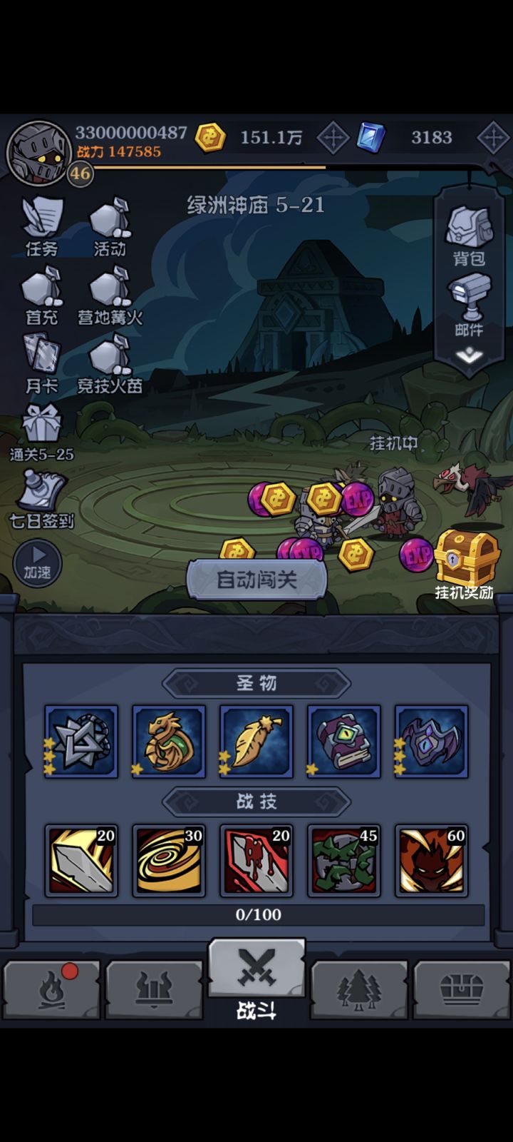 区服:一区 玩家:奕秋 2025年10月21日 (开服第二天晚上)开始玩,历时45天通关16章,开启五阶红装(现阶段毕业装备)兑换,在此谈谈个人心得,欢迎大家一起探讨。一、技能篇。推图、深渊、迷雾用一套技能就行,精英需要换单体技能,具体技能后面会在跟帖里发图。二、圣物篇。圣物基本上一套就够了,详情会在跟帖里发图。三、装备篇。装备分防装跟攻装,装备品质分白、绿、蓝、紫、橙、红,打怪掉