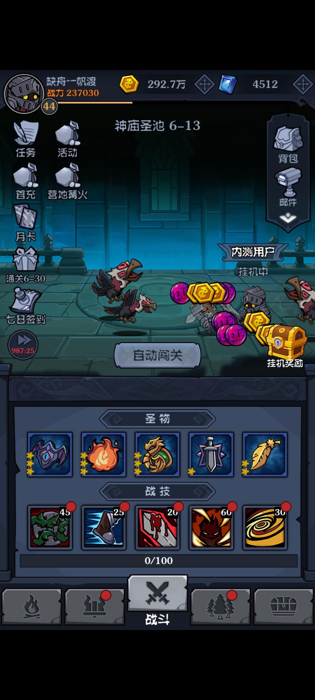 微氪首充第三天升级开始慢下来了,正式进入放置阶段。总体游玩下来感觉不错,宝物合成偶尔会出现异常的小bug。想要入坑游玩的话,氪个月卡跳过广告体验会更好。