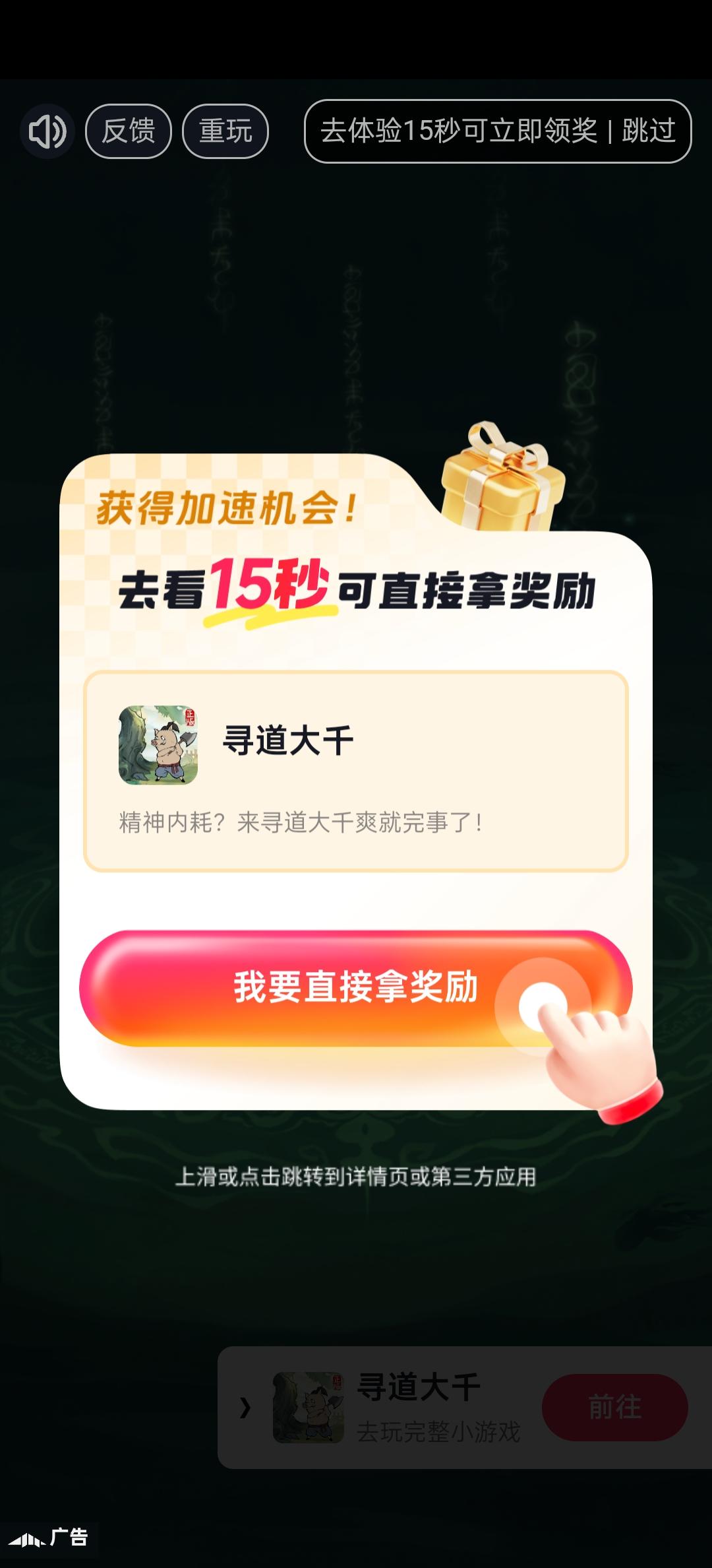 广告过不去,点了就让玩寻道大千。