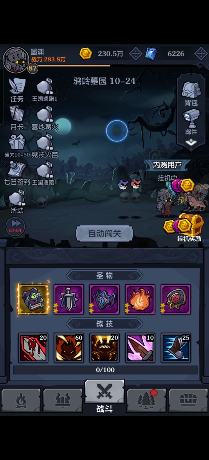 注意:每天晚上12点会开新区,快人一步就是经验多好多小时的1.前期跟着引导打完3章,最好开一个永久卡,只要98,然后兑换码全部领一下,有很多箱子可以开出圣物和超级多金币,紫色箱子和金色红色等打不动图再开2.商店里面20钻买200升级装备的石头,前期可以买1000钻差不多,强化81级之前只建议强化到10左右,不用强化券,后期应该会很缺,等拿到毕业装备再用吧3.圣物提升非常大,6元首充送一个橙色
