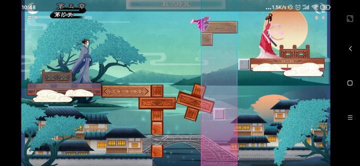 第五章第10关如图,第四块要在第三块放下来之后滚第二下以前就放下来,具体时机自己把握,可以形成图一或者图二的状态。不过成功率只有百分之十几二十的样子