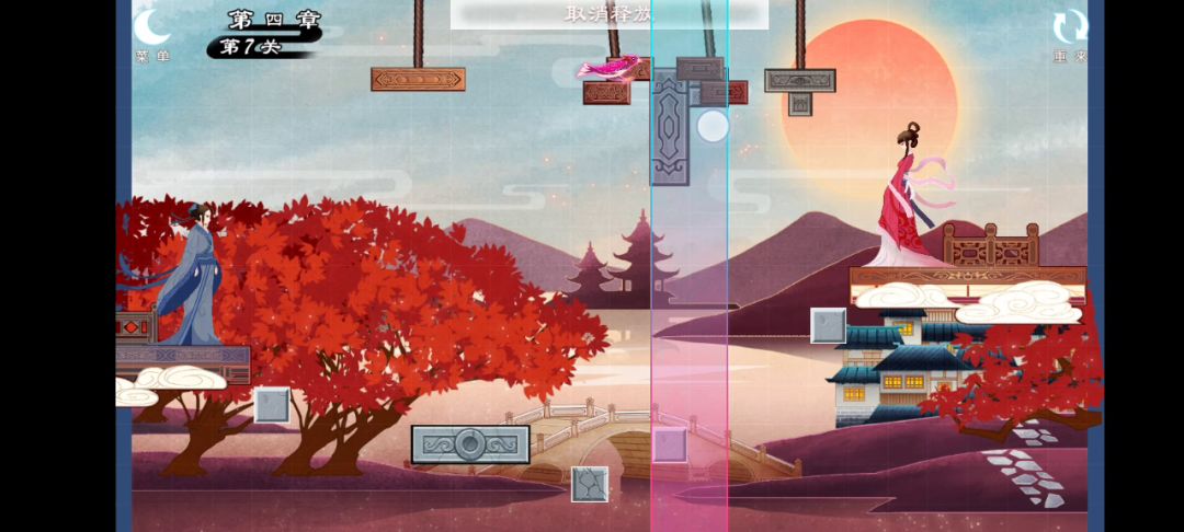 第五章第10关如图,第四块要在第三块放下来之后滚第二下以前就放下来,具体时机自己把握,可以形成图一或者图二的状态。不过成功率只有百分之十几二十的样子