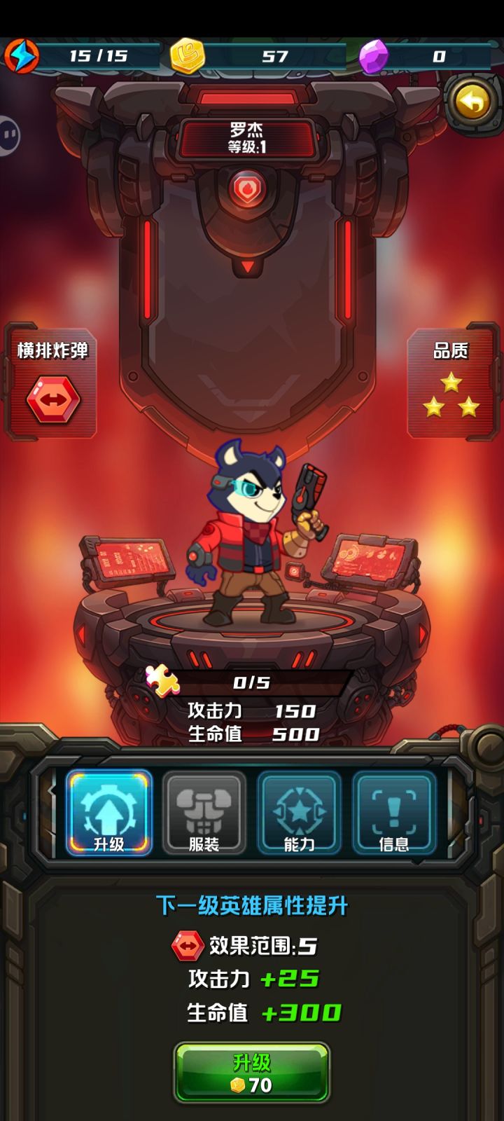 技能每个英雄独有一个,最大出战五名英雄,也就是五个技能。每个技能也都是单线升级形式,第一级可以免费提升,但后面所需金币跳变较大,养成提升比较缓慢。