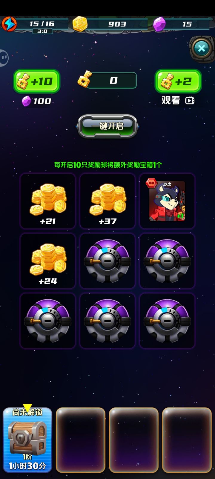 轻度游戏的混合变现,钥匙开箱为主,支持看广告开启箱子,可以获得英雄碎片、金币等物资,一定几率还会获得宝箱,类似皇室里面的宝箱,可以消耗时间来开启,或消费钻石立即打开。版本初期阶段,商业化的内容并不多,后面应该还会增加。