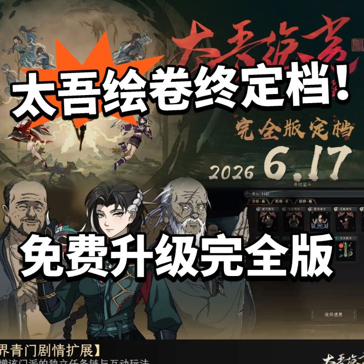 由螺舟工作室开发的神话武侠题材独立游戏《太吾绘卷》近日又有瓜吃了家人们!这款曾在半年不到时间内售出100万套,被玩家评价拉高了国产游戏的上限的国产独立游戏神作,近日总算爆料了游戏定档时间,可给大家一阵好等嘻嘻。之前这款神作曾因内容增加后的测试难度增加、团队选择保质等因素选择延期,不过在官方最近发布的《致玩家们的一封信》中,官方宣布《太吾绘卷:天幕心帷》完全版正式定档2026年6月17日上线。#主机单机