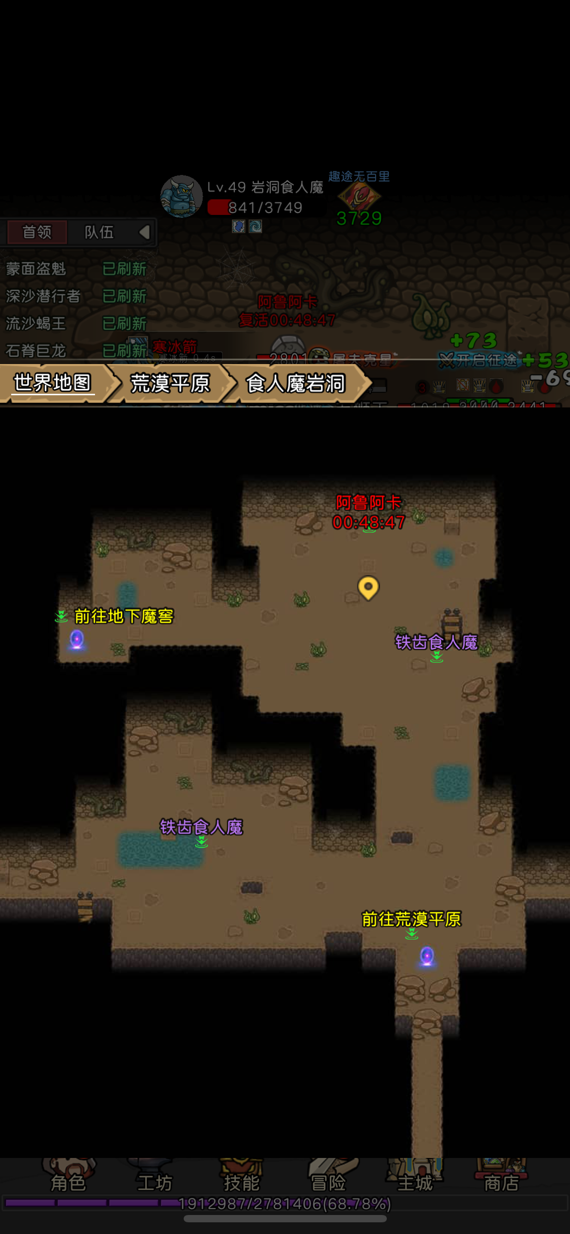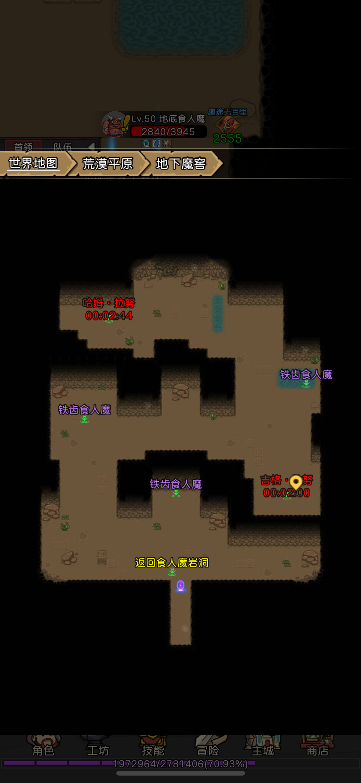 游戏前期升级比较简单,升到45级以上的时候主线和支线任务做完以后,大地图挂机效率太低。不管对于氪佬还是平民来说来说挂机升级都是一件痛苦的事情,这里总结了自己的经验,推荐45级开始在荒漠平原地图食人魔岩洞组队挂机,如果单人,可以在1层boss挂机,如果组队,并且队伍里有牧师,可以去二层,出怪很多,精英也比较多,还能同时刷boss掉材料,挂机效率高,这里推荐组队去二层50-60级升到50级以后,
