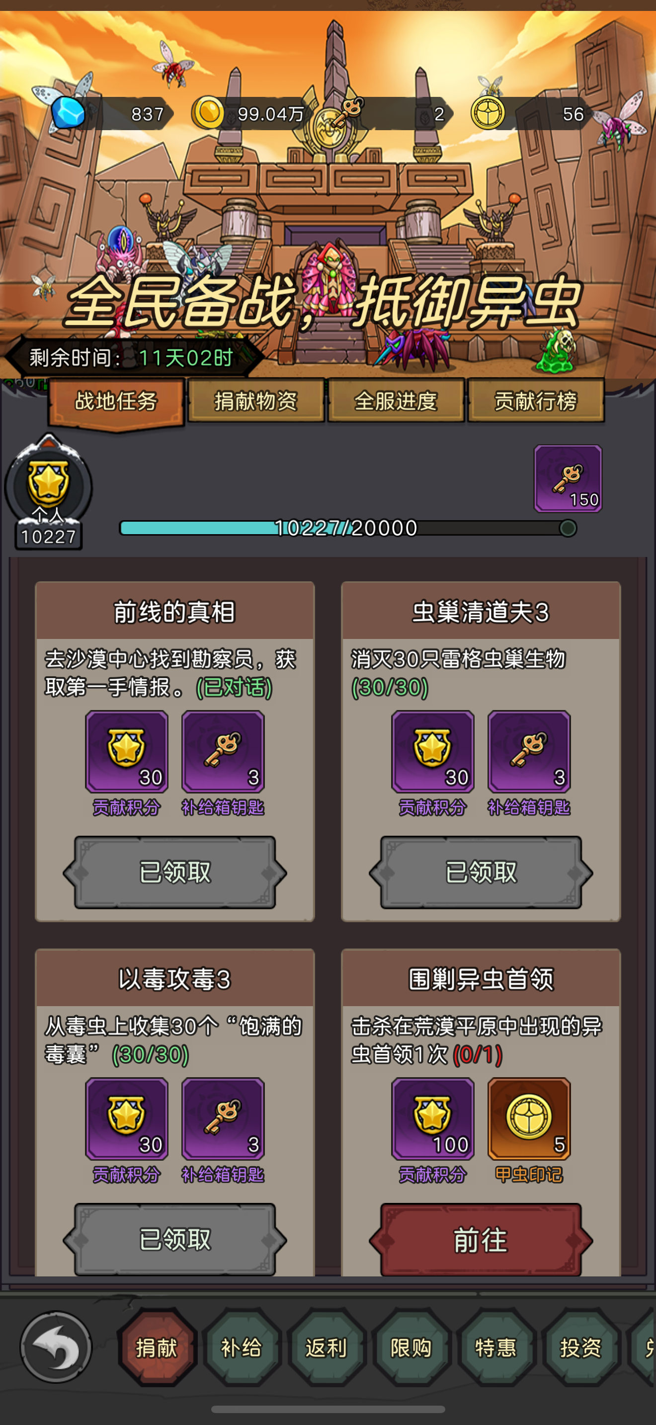 「虫巢之心」全服解锁进度已成功达到100%抗虫号角吹响后,永恒大陆全体冒险家同心聚力、并肩冲锋,异虫入侵全服进度首日火速破千万,「虫巢之心」副本已提前解锁!为铭记这份首日破局的荣耀,我们已为全服玩家发放 【甲虫纪念勋章】专属藏品!此勋章为庆祝永恒大陆的勇士们在抵抗异虫入侵的史诗战役中取得辉煌的成就而特制,勇士们的英勇、团结和无私再一次创造了新的传奇,而你就是这个传奇的创造者!为助力全体冒险