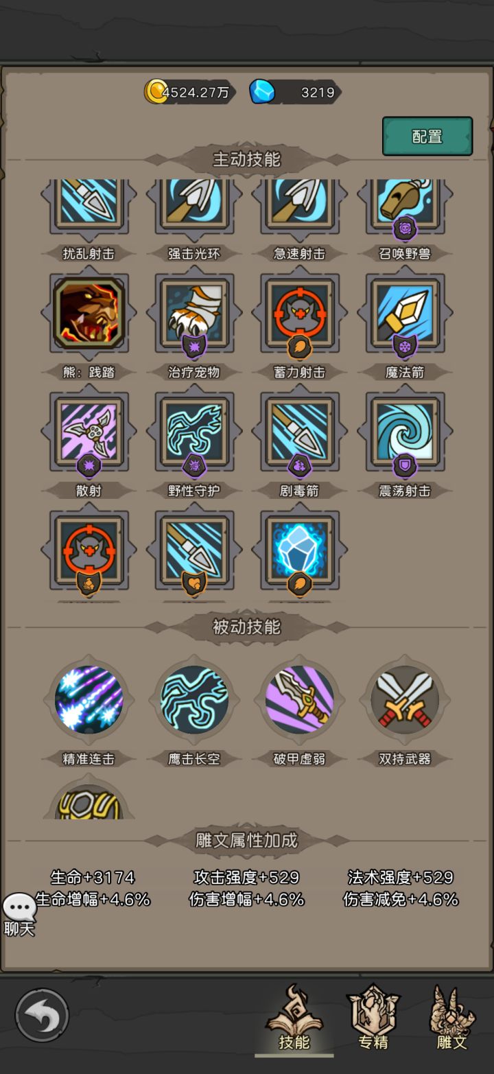 猎人,震荡射击的概率晕人,箭雨15级多一段伤害全给拆进雕文了。谢谢你帮我省钱,安心停氪了。