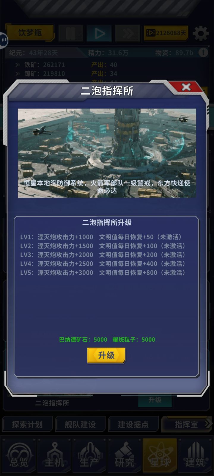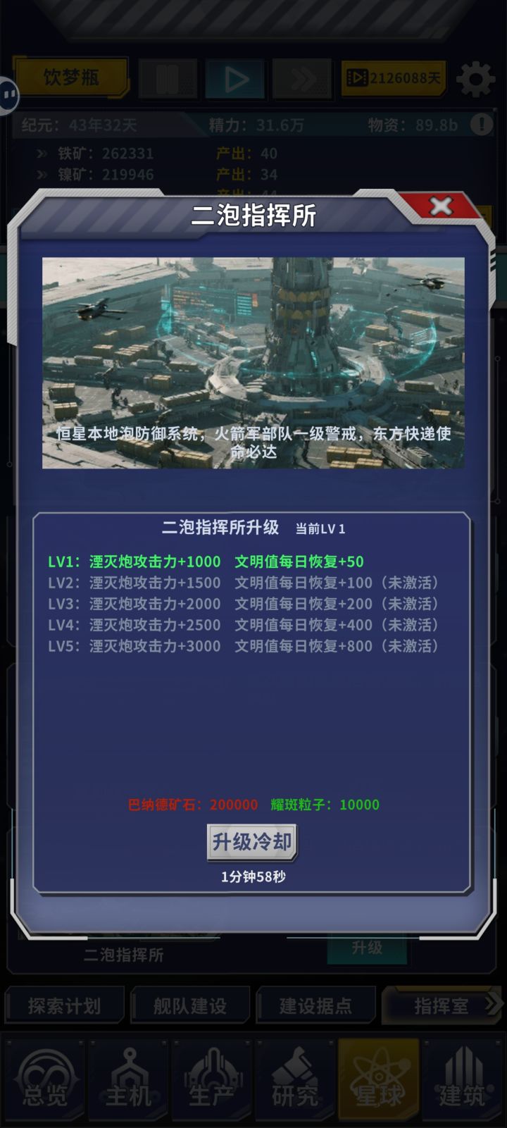 前两个炮50级,后面所有炮40级全建造之后送三个机遇加上便宜的第一级就是1300湮灭炮基础伤害还行😇,明天解锁第二级之后再看吧,极限档又有得打了目前星系雷达界面的武器攻击是103w了怎么说呢…因为之前闲着没事升级炮所以从发那个记录贴的时候到现在也就过了16天就达成了,很好