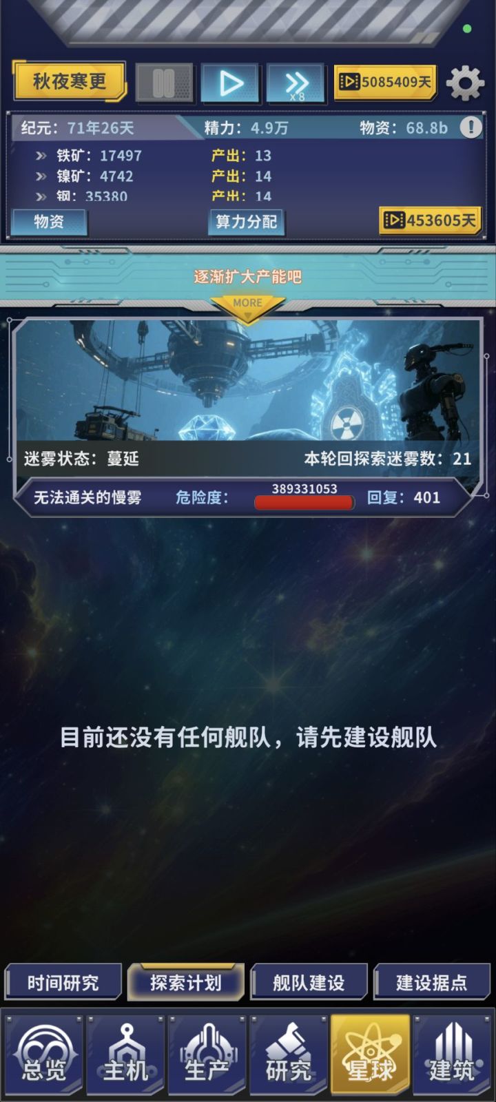 经过使用加速时间扫荡第二轮的10年档,此时已经开启了不少新东西。现在,该准备正式开始打陨石了。1.轮回助力:天狼记忆、遥远的太阳、电流之歌(10w文明对于开启迷雾探索很重要,后续需洗点。)、重金属夫人都值得满级。循序渐进即可。螺丝刀之刻只需要3级,电子木鱼2级,加特林菩萨和强军战车需满级。不过后面这些太远了。2.武器:武器达到9级可自选词条,达到18级可自选所有品质的词条。所以武器优先全部到达