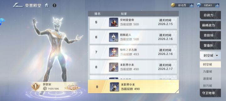 除了全服战力最高的两个大佬,其他人全都卡500层了目前二队弄了个燃烧队,三队弄个生命队怎么样#奥特曼光之战士