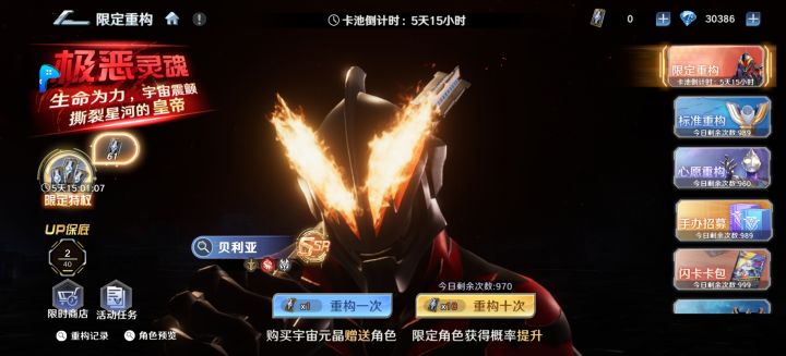 目前是第十五天,主玩贝利亚的,贝利亚抽到了七星(凤凰梦没抽,下一期至高盖亚我也不打算抽,攒着抽天爪),现在正在考虑要不要抽贝利亚超越材料,但今天出了个团购福利,一时没忍住钻石快花光了,后悔死了,打算重新起号去玩零氪贝利亚了#奥特曼光之战士