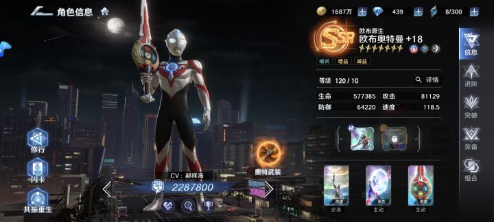 快结束了,总算抽到7星加武器1,闪卡没钱抽…首先说欧布成长性非常强,如果你打算长期培养他,他绝对不会让你失望,满星满武的他十分可怕(但有这资源又何必呢)速度十分快,在天爪没闪卡下他是最快的,但低培养度导致他的确伤害刮痧,正如他设定,他是坦克…有些后悔,把这些钻石拿来培养终极赛罗,反响会更好