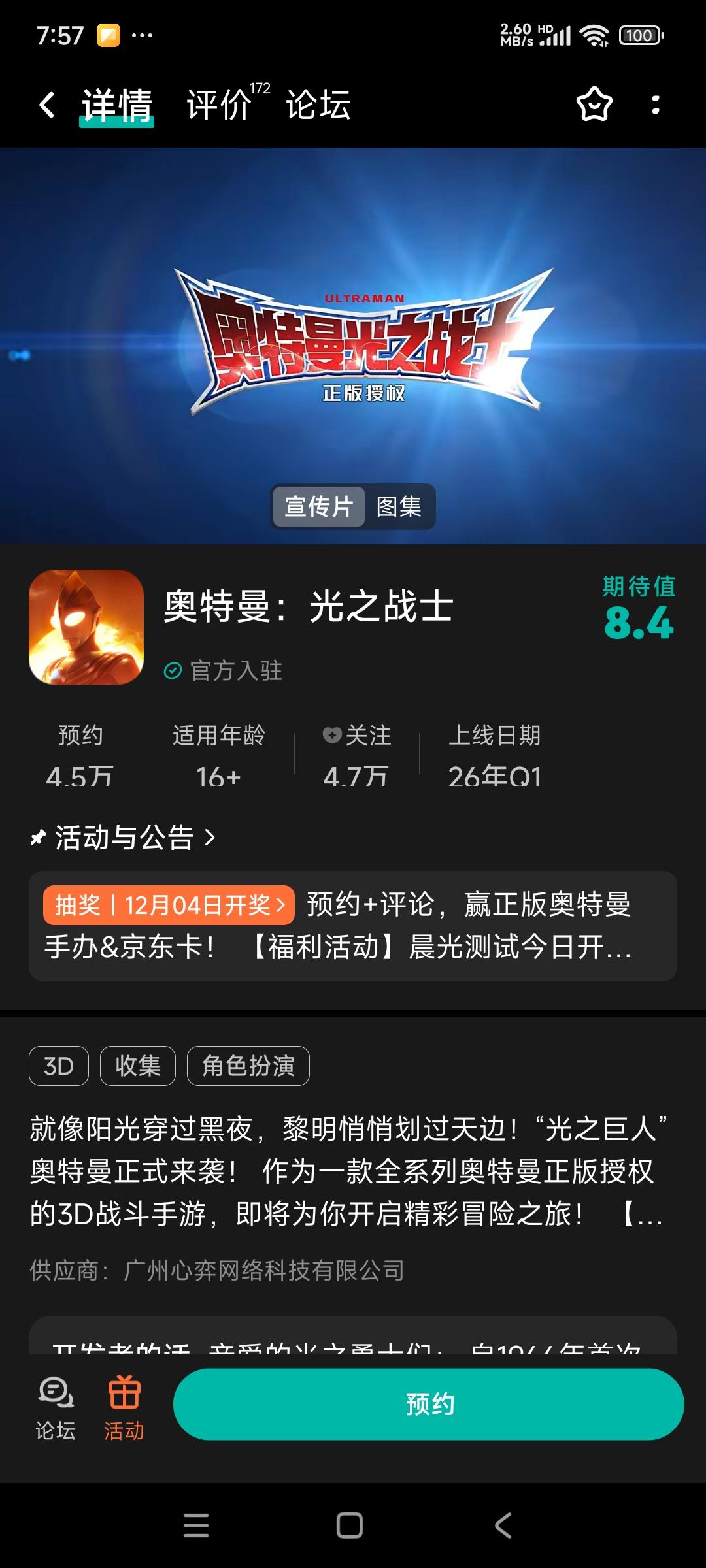 亲爱的光之勇士,我们是《奥特曼:光之战士》的开发团队。就在这里,就在今天,我们要向全宇宙宣告一个最重要的决定——由圆谷正版授权监修的奥特曼IP手游《奥特曼:光之战士》全平台公测定档2026年1月29日!当屏幕亮起,当变身器的光芒再次闪耀,我们希望每位光之勇士知道:这束跨越了半个多世纪的光,终于要交到你的手中。而我们为这次重逢准备的,是那句贯穿始终的誓言:“光之传承,永不熄灭”。在漫长的等待与