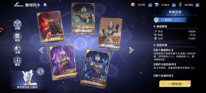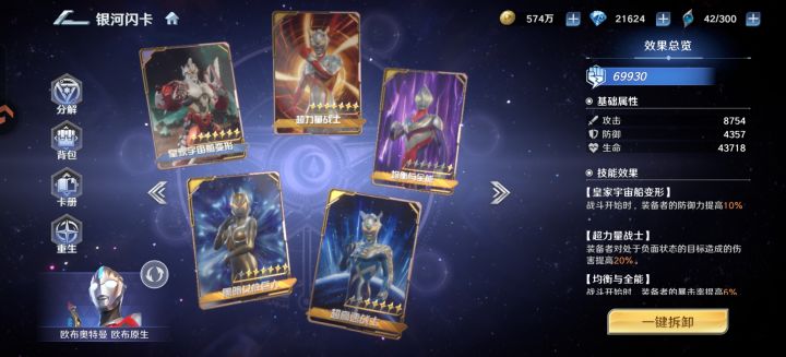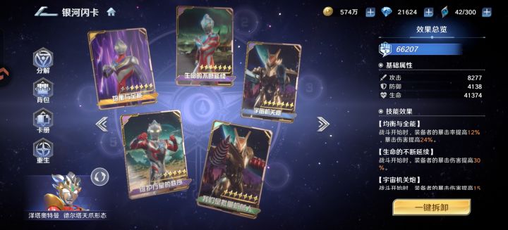 快结束了,总算抽到7星加武器1,闪卡没钱抽…首先说欧布成长性非常强,如果你打算长期培养他,他绝对不会让你失望,满星满武的他十分可怕(但有这资源又何必呢)速度十分快,在天爪没闪卡下他是最快的,但低培养度导致他的确伤害刮痧,正如他设定,他是坦克…有些后悔,把这些钻石拿来培养终极赛罗,反响会更好