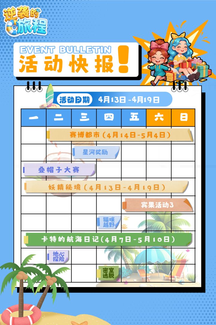 亲爱的旅人们:春风送暖,次元裂隙开启!未来一周(4月13日-4月19日),酷炫的赛博都市装扮来啦,还有卡特的航海日记持续航行中,更有短时爆发乐趣的妖精秘境活动等你探险,赢取超多好礼!🌟准备好迎接这场穿越次元的狂欢了吗?不见不散哦!“赛博都市”即将上线。假如你是这座霓虹城市里的一名普通打工人,你的职业会是什么?💡 示例:全息广告牌维修师 / 电子宠物临终关怀员 / 数据垃圾回收员📍 参与方
