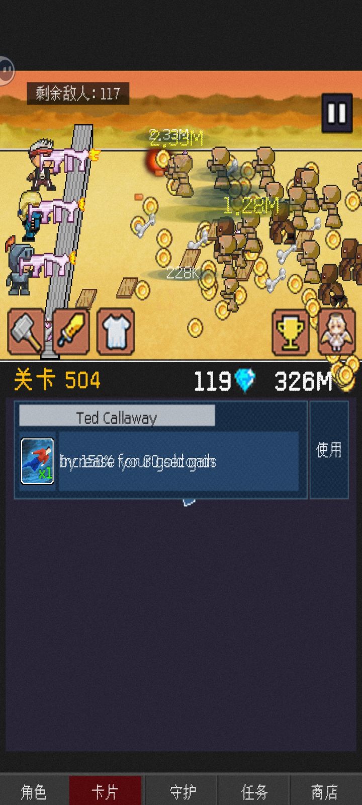 1.自动开始,可以出一个自动开始的东西,不然玩家要一直盯着手机,很容易疲惫,我可以直接挂机2.在线功能,我可以更换设备玩,很重要!我可以挂云机3.增加收益,每过一关每分钟增加多少金币多少钻石等等4.皮肤增益,我拥有皮肤就应该有属性加成,哪怕只有百分之十,否则我获取皮肤就没有意义,除了出战的都用获得5.战斗优化,小怪是否可以显示生命(小领英怪那种),一级武器怎么处理(初始武器)又没法打造合成