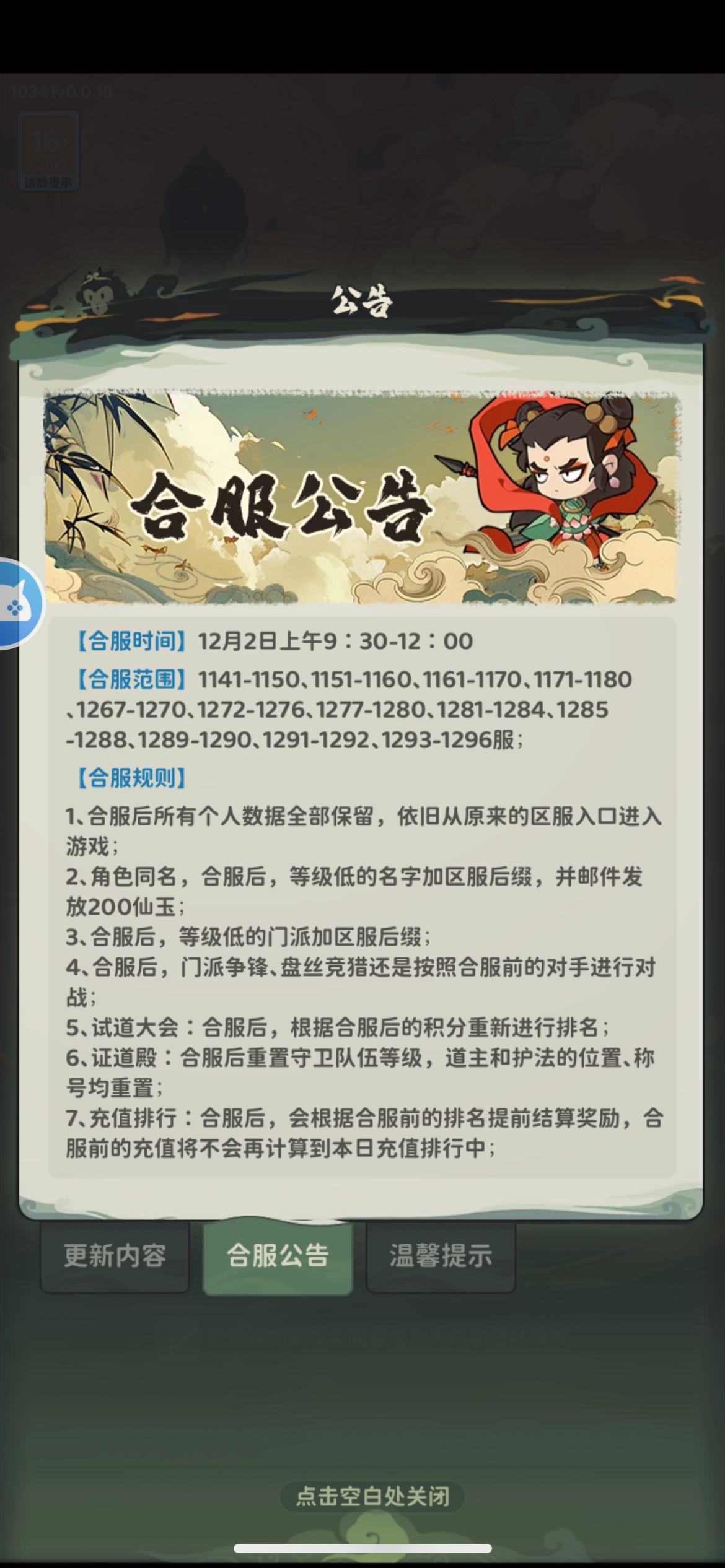 玩了一个多月了,这游戏的套路也看得七七八八了,说一下关于合服方面的吧。1.一天开几个服,然后二十来天合次服,这次是两三个服合成一个;2.再过个二十来天再次合服,这次是十个服合成一个,3.再过段时间继续扩大范围合服;4.不断重复3。只能说一个月氪个几百一千的完全可以退游或者摆了,没有一点意义。刚开始你氪着玩着,你在的服不断有人退游有人摆,你终于进了前十前八,然后合服了,你直接跑到几十名;然后继续