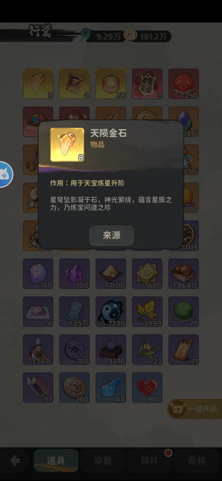 开服后1.找个刚开的服礼包码兑了。第一天玉不要存,拿来买‘试道文牒’把试道大会成就拿满!(后续零氪不可能拿满)2.万妖巢云游土地用铜钱买的法宝必买!3.基础葫芦、强力葫芦优先升级攻击其他平均升,技能葫芦平均升4.圣尊降临活动道具拿满在抽容易出货4.如果猜拳活动开了,每天一次持续七天,赢了10个‘珍稀好运袋’,果子只兑类似‘珍稀好运袋’的西行袋子(累抽活动太多)5.龙宫探宝前期(前50