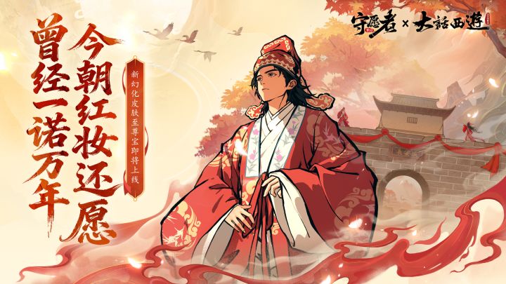 联动活动大爆料来咯~哈喽各位天命人大大,你们一直在催的新皮肤&新活动爆料终于来咯!这次皮肤是《守愿者》X《大话西游》的专属联动皮肤【大圣娶亲】,采用的是大话西游中娶亲的名场面!看来前世之憾在此终以得偿所愿~新皮肤的具体细节快随情报员小猪猪一齐揭晓吧↓↓↓🧨大圣娶亲红衣映霞金冠熠,祥云为驾鹊桥迎。月光宝匣系良缘,齐天大圣为卿临。新皮肤【大圣娶亲】踏愿而来,天命人敬请期待~✨立绘欣赏✨战