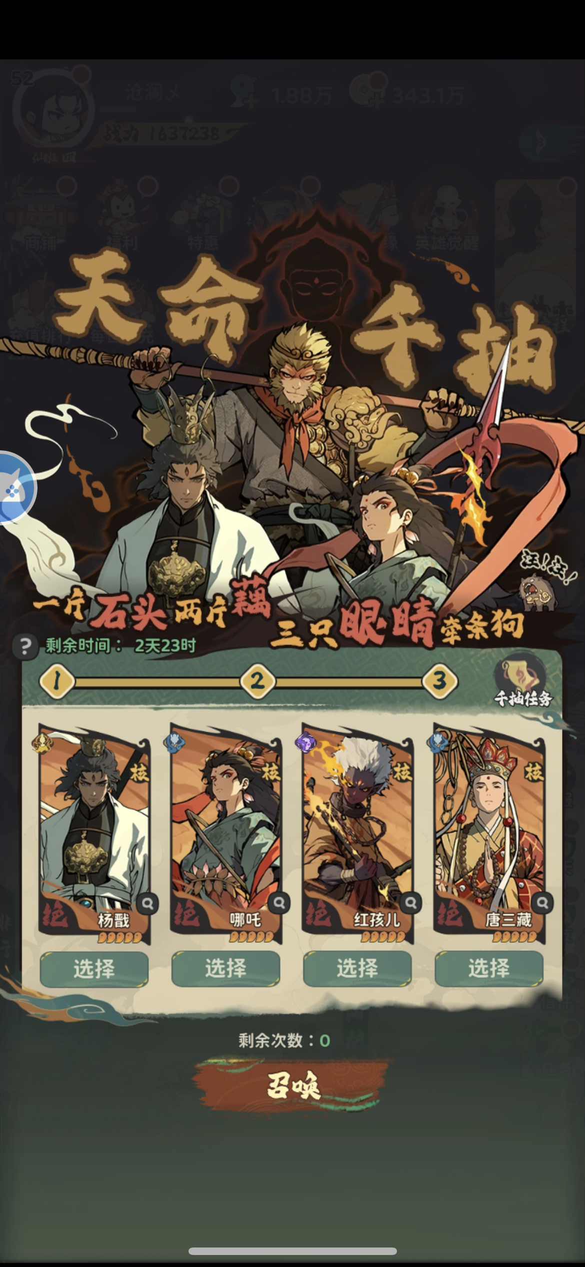话说,三个反骨仔选一个,如果刷到哪吒怎么玩?是配唐僧,亢金和狐狸?空的位置还用什么卡?杨戬是不是被屏蔽了,也开了几个号了,千抽和自抽就没见过杨戬