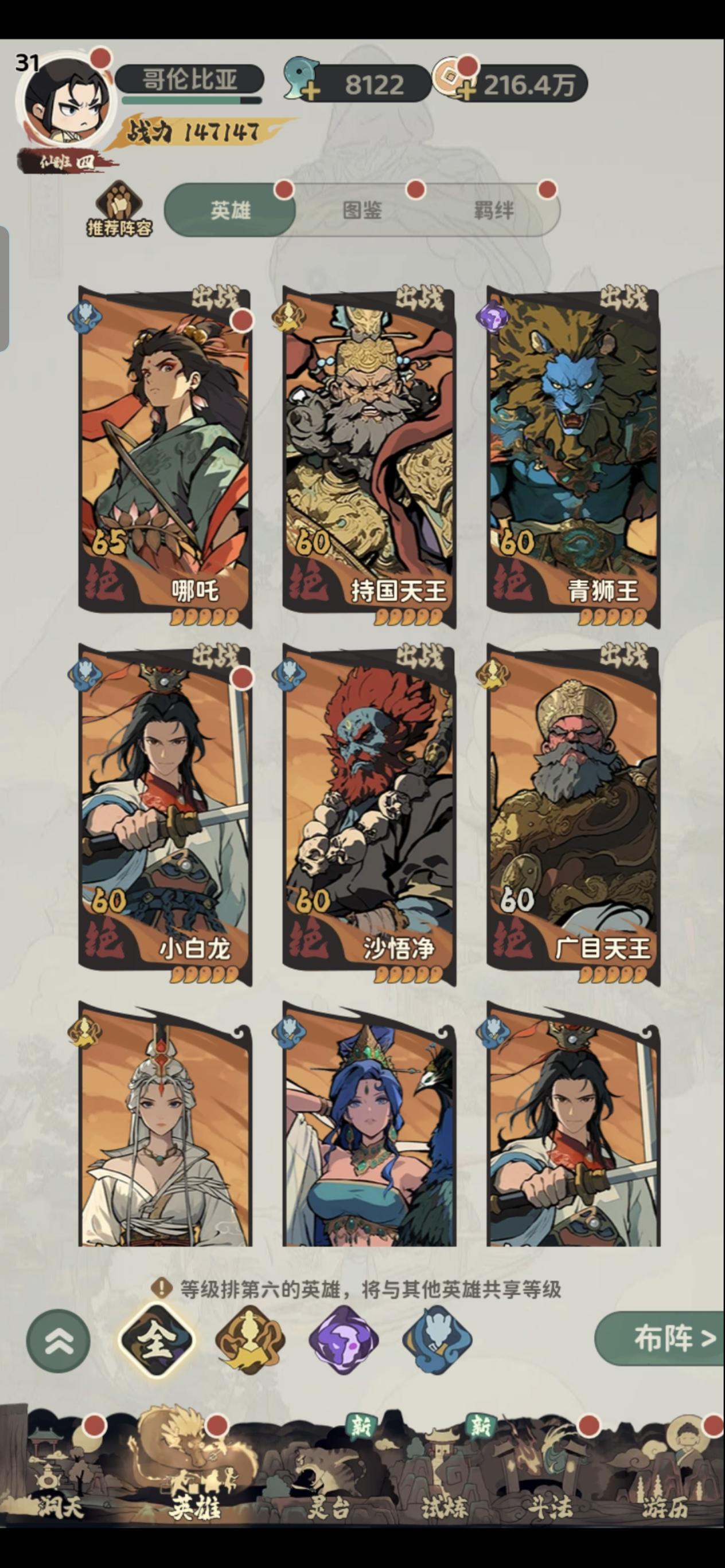 作为微微氪,月卡党,星宫满星奖励红色法宝,推图收益非常高,上贴分享了推图攻略,站位心得,这贴分享一下武将圣尊链接心得。战力2.8E,排名8;星宫排名4,进度超过战力4E大佬(可能大佬不喜欢推图),如图2一、武将搭配思路因为PVE基本是跨3倍战力推图,怪物属性强度非常高,所以武将搭配2个前排+4个后排最优,前排扛得住,才有可能通关。其中主力输出最好用前排战士,能抗能打,后排输出最多用1个三太子,