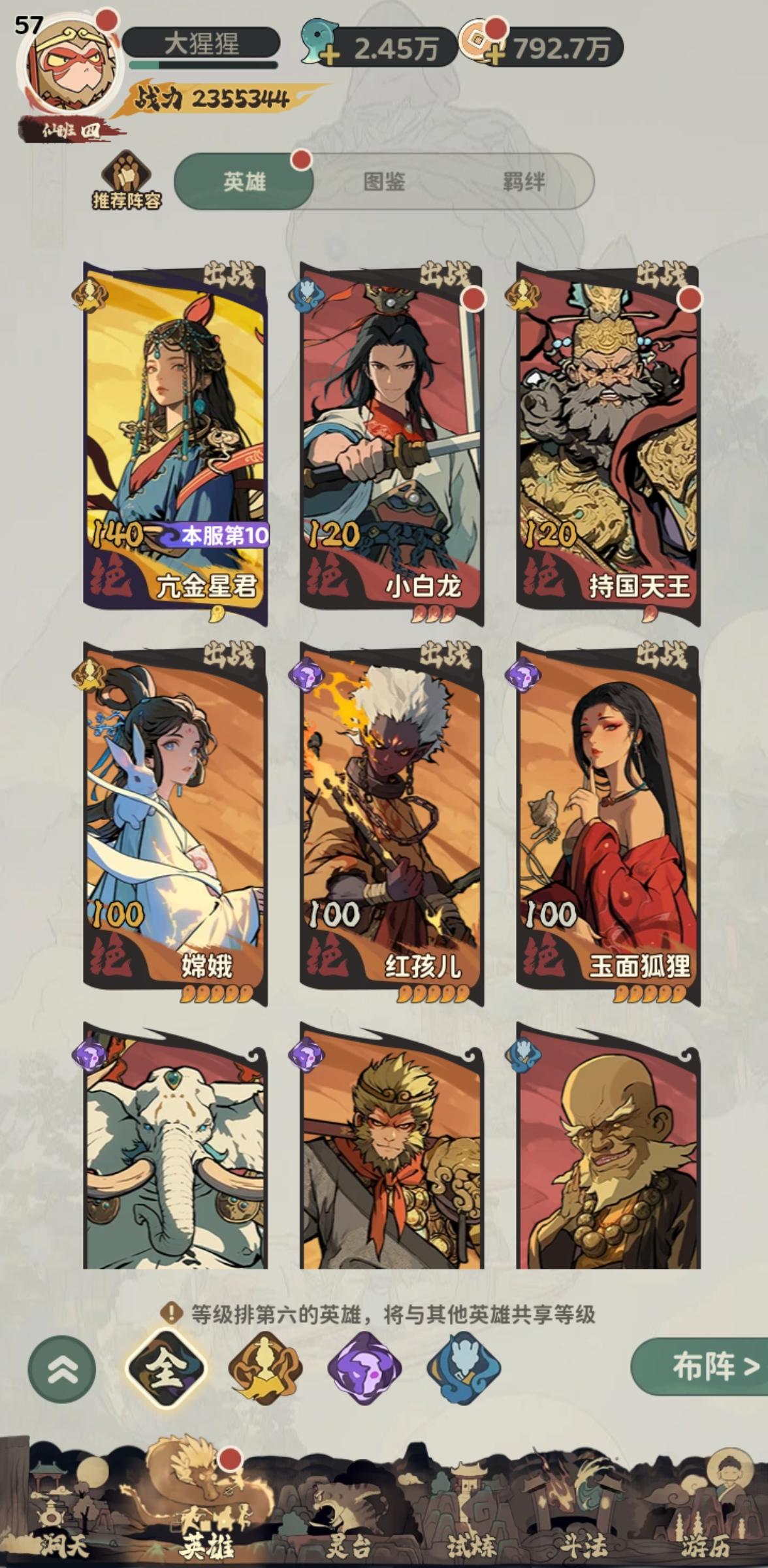 两大重点总结(嫌麻烦直接看总结)1、显圣真君10转以后,拉大圣10转,白骨夫人5转命魂原因:真君10转是因为法天象地从限时变永久;大圣拉10转主要是10转带斩杀,其次是三转加攻击,其他转数增加六根,六根越多暴击和暴伤越高,伤害提升不小;白骨5转是因为5转增加全体友方暴击和暴伤,提升很大,特别是在增伤溢出的情况,顺便还能增加奶量,可谓一举两得,至于是先大圣10转还是白骨夫人5转,10转一共