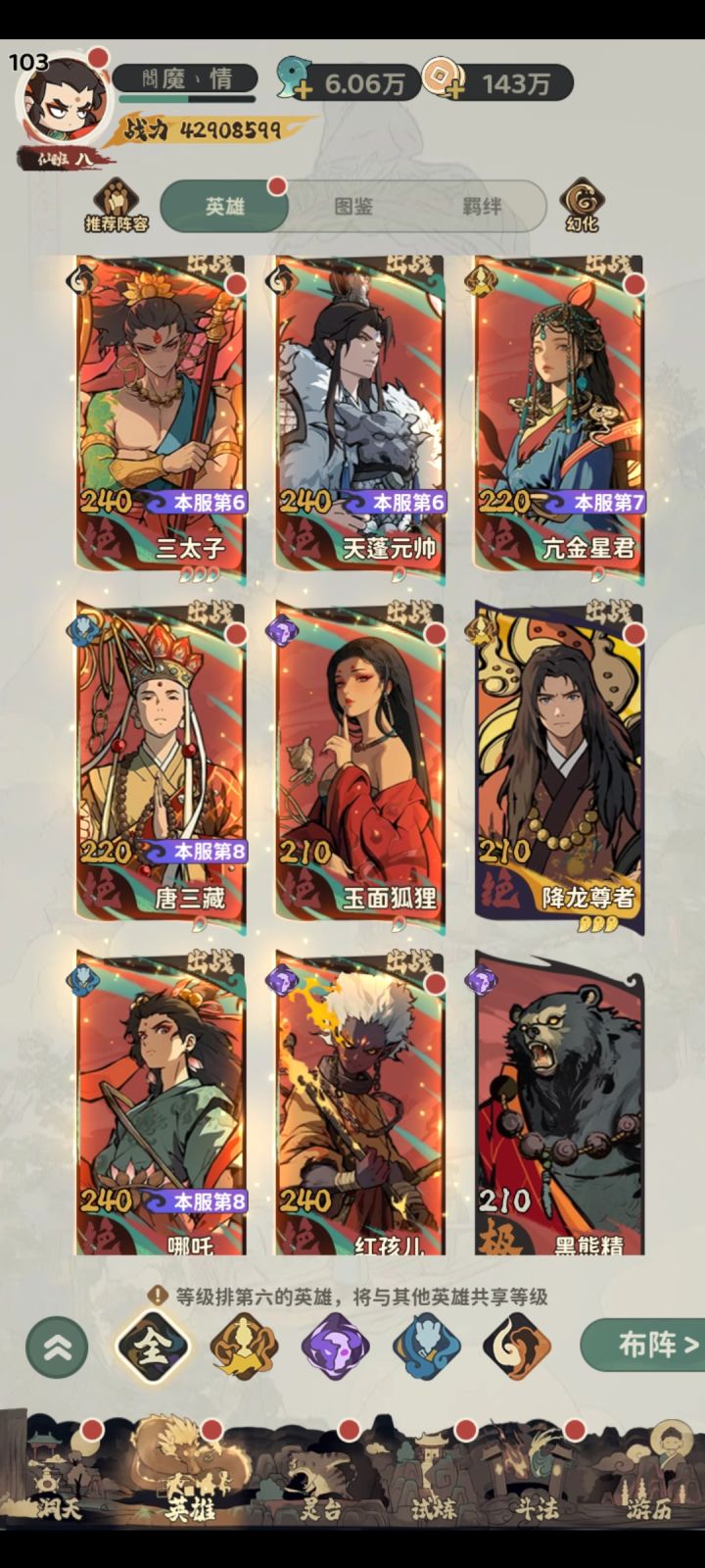 东皇妖帝 远程/法伤/群体/火焚/ 佛莲/群体/火焚/法伤 1技能:主动技能对对方全体造成4段法术法术伤害,每段有30%,50%,70%(1,2,3级)概率添加佛莲; 2技能:增加30%攻击力,10%暴击率,法术穿透增加15%或法术伤害增加10%(3级); 3技能: 怒气技能对全屏幕范围内的敌方全体造成8段法术伤害,每段均有25%,50%,75%(1,2,3级)概率施加火焚。 4技能: 每当敌方英雄被添加负面状态时,为其额外添加一层火焚。敌方英雄身上每存在一层火焚,为东皇太一增伤0.5%(1/2/3级分别为0.3%、0.4%、0.5%)