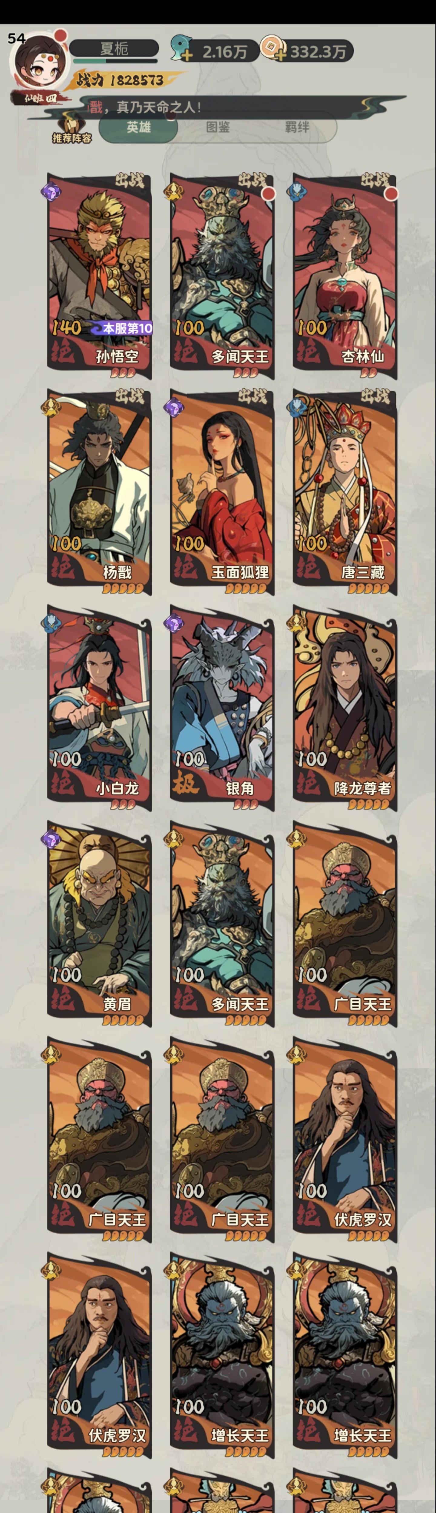 因为作者从白骨夫人开始微氪,错过了法宝活动,目前一直在补,法宝方面圣品法宝仅有生死簿和翻天印,难免有所疏漏大家多担待。目前看,法宝=灵侍>守护,大家在法宝活动的时候一定要珍惜。。下面根据自己微氪号对法宝 系统进行介绍,同时对一些热门法宝进行实战评测,有关圣品法宝的建议均参照本服20亿大佬的搭配交流后给出。一、法宝系统概览 随着英雄星级提升,可佩戴法宝数量也增加,6星可以解锁两个法宝穿戴槽位,1