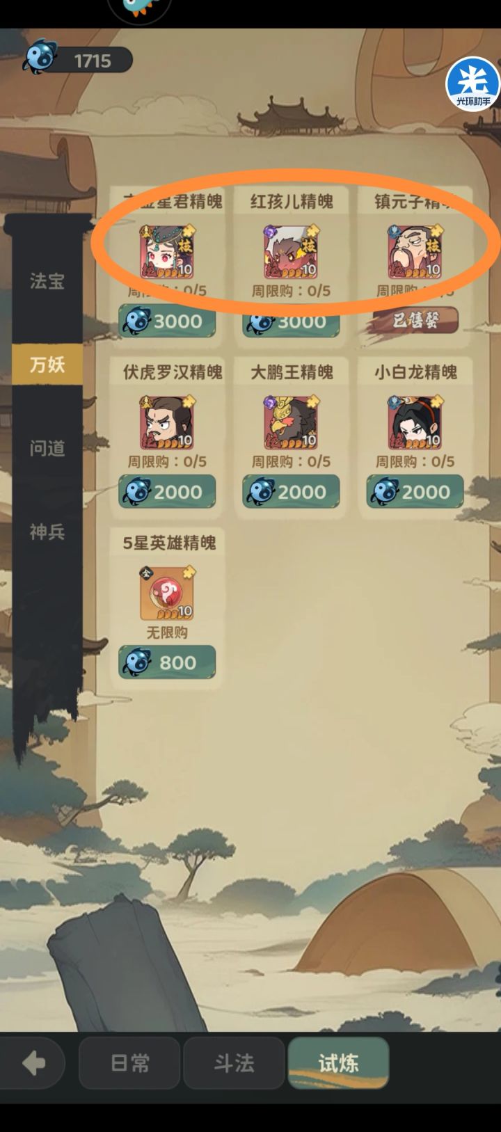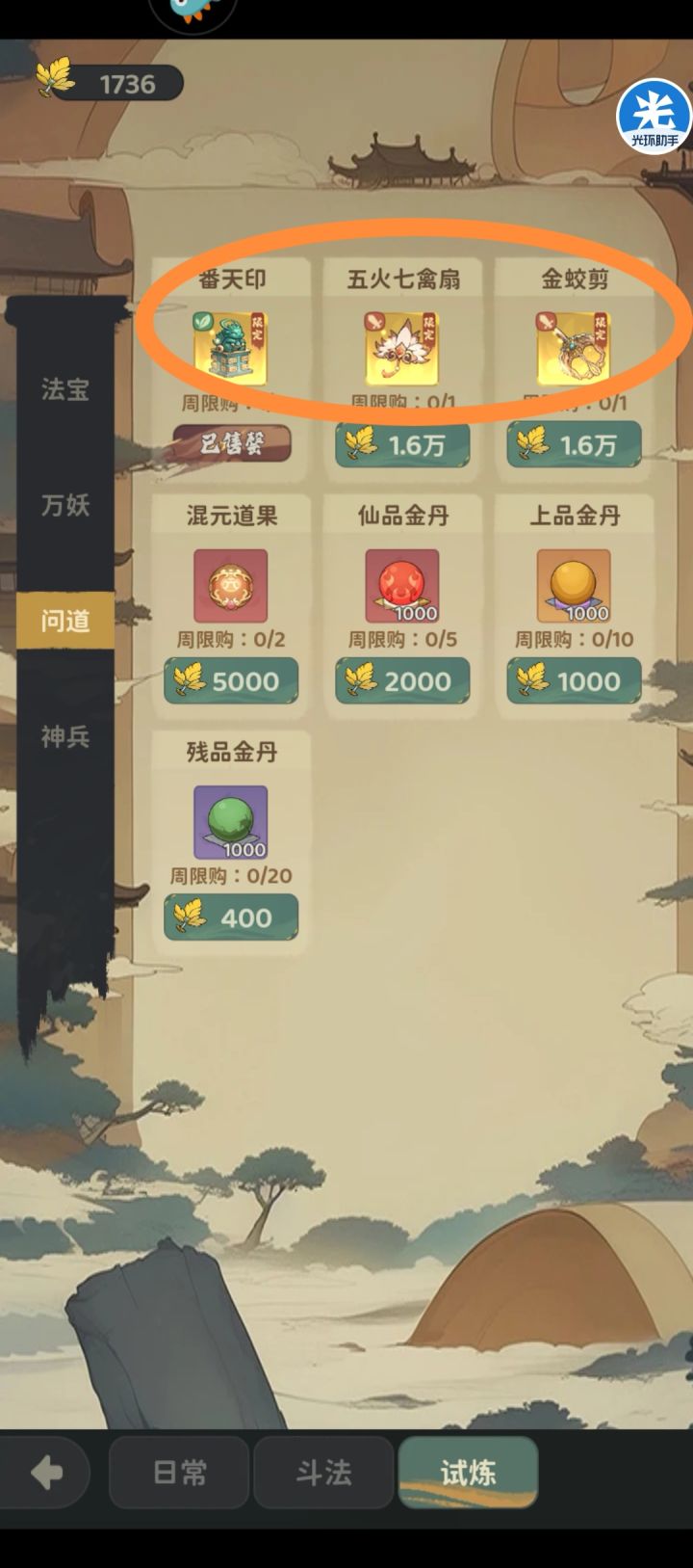 上贴介绍三大商店前二的日常、斗法,这贴说一下试炼商店。 一、法宝前中期选橙色法宝,能刷新出红色法宝以后,建议把刷新10次都用完。推荐理由:红色法宝才是后期标配。并且刷到红色法宝又没钱买也不怕,商店自动增加的是刷新次数,不刷新商品。刷新10次才1000代币。每天没花完的代币就买紫色、橙色法宝,后期法宝升级需求狗粮巨大,如红色4升5需要9个橙色+60个紫色。见图1/2/3推荐优先级:①橙色