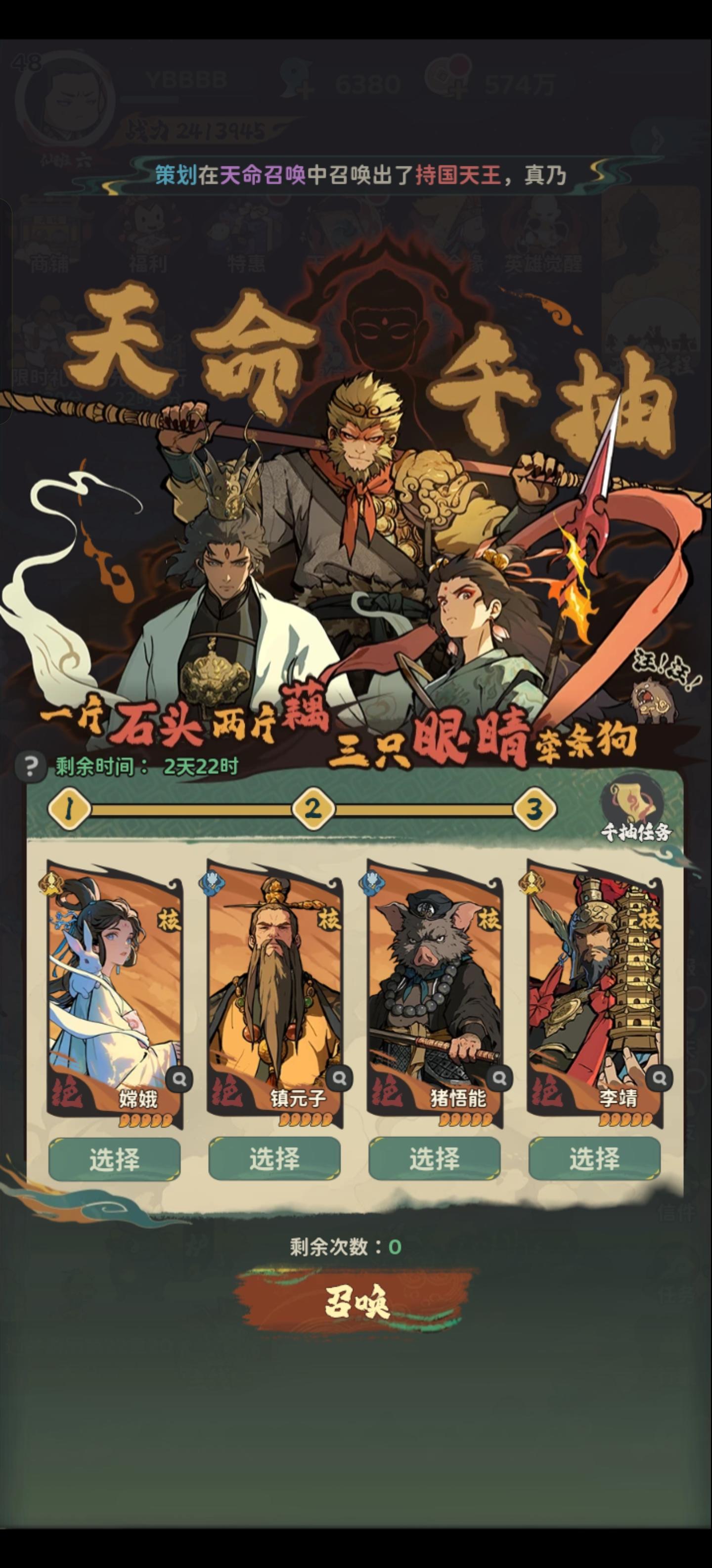 第一次出了一个哪吒,然后第二次没哪吒了,应该选谁呀…