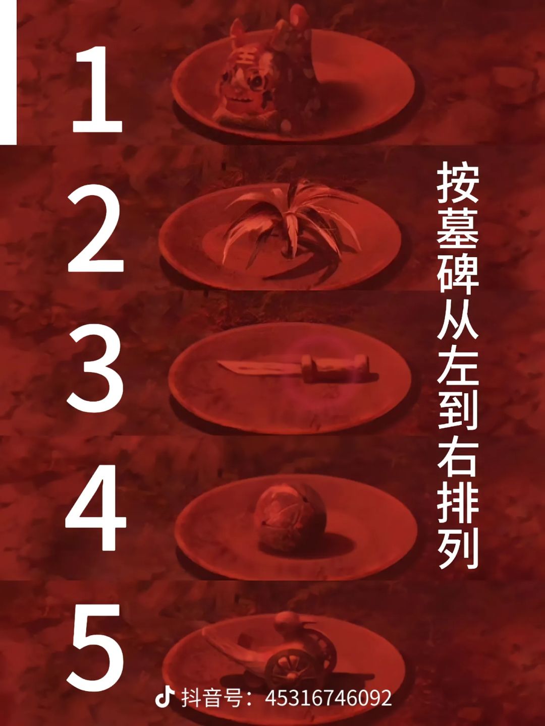 作者:永夜 月辰 相关攻略: 1. 点击树上的灯笼,进入点灯小游戏环节。保持莫琪视角(为方便区分,以下统称为红色视角),拾取【灯笼】和【泥塑头像】。进入六葬菩萨场景,给予黑影灯笼,注意观察五人手捧的祭品类型,从左到右分别为【泥塑人头,香炉,果子,葫芦,牲头】。 2. 切换至莫黎视角(为方便区分,以下统称为蓝色视角),进入六葬菩萨场景,按照上一步骤中观察到的祭品类型,将五人手中的祭品从左往右调整为【