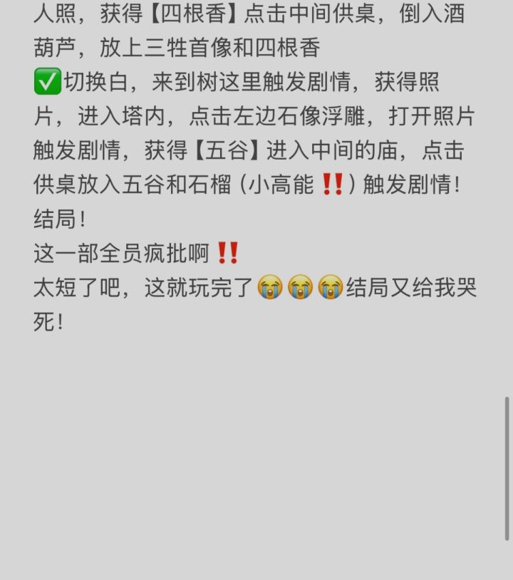 后面剧情就是一坨,诶我去什么鬼啊我的天这个雷霆剧情,代入姐姐视角,天崩开局,蛰伏多年成仙因为是血缘上的孪生妹妹所以妹妹无任何负担的继承了我成仙的能力还用能力一直阻止我,阻止我就算了我最后想要吞噬她结果她怀孕了还是双胞胎,行吧最后我相信命运了跟妹妹一起赴死,怕她害怕我还给她唱歌,结果最后只有我一个人死了,死后那俩人还蛐蛐我#纸嫁衣8千子树