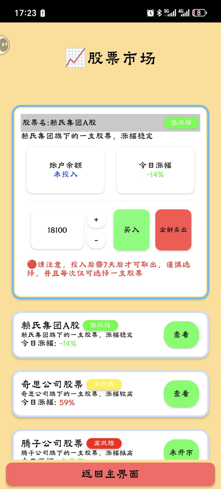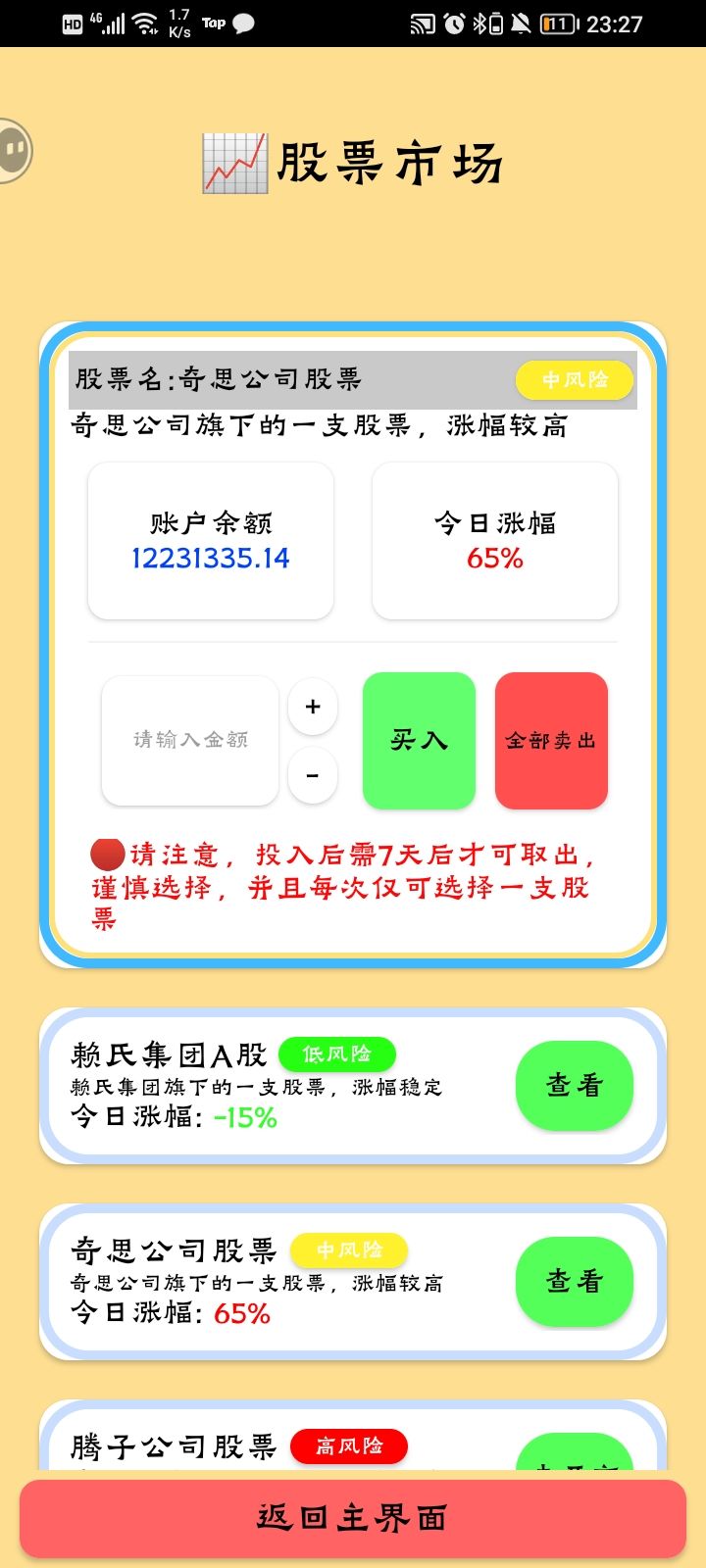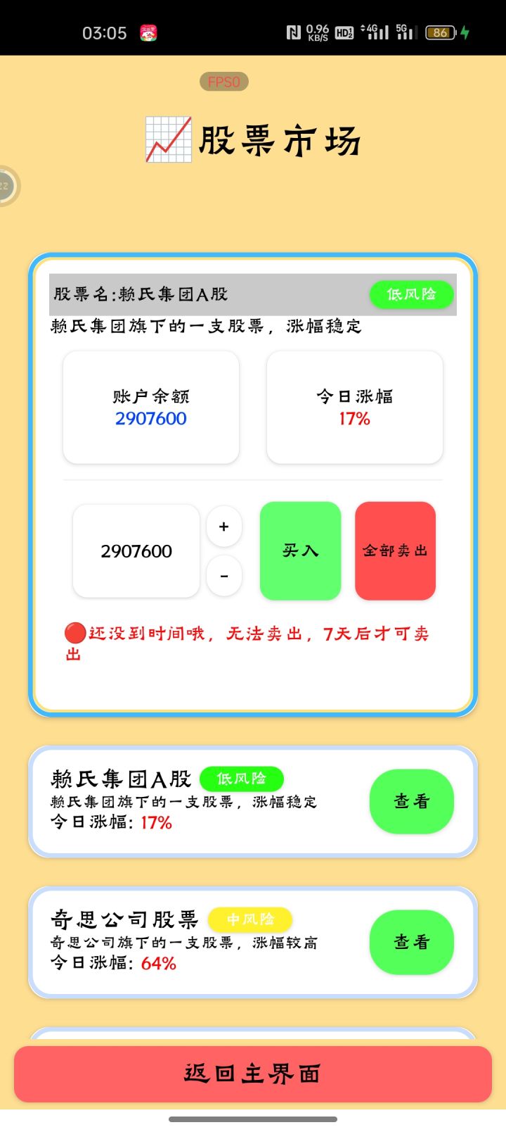还有就是股票一次只能加一百,让我们梭哈专业户很难点!