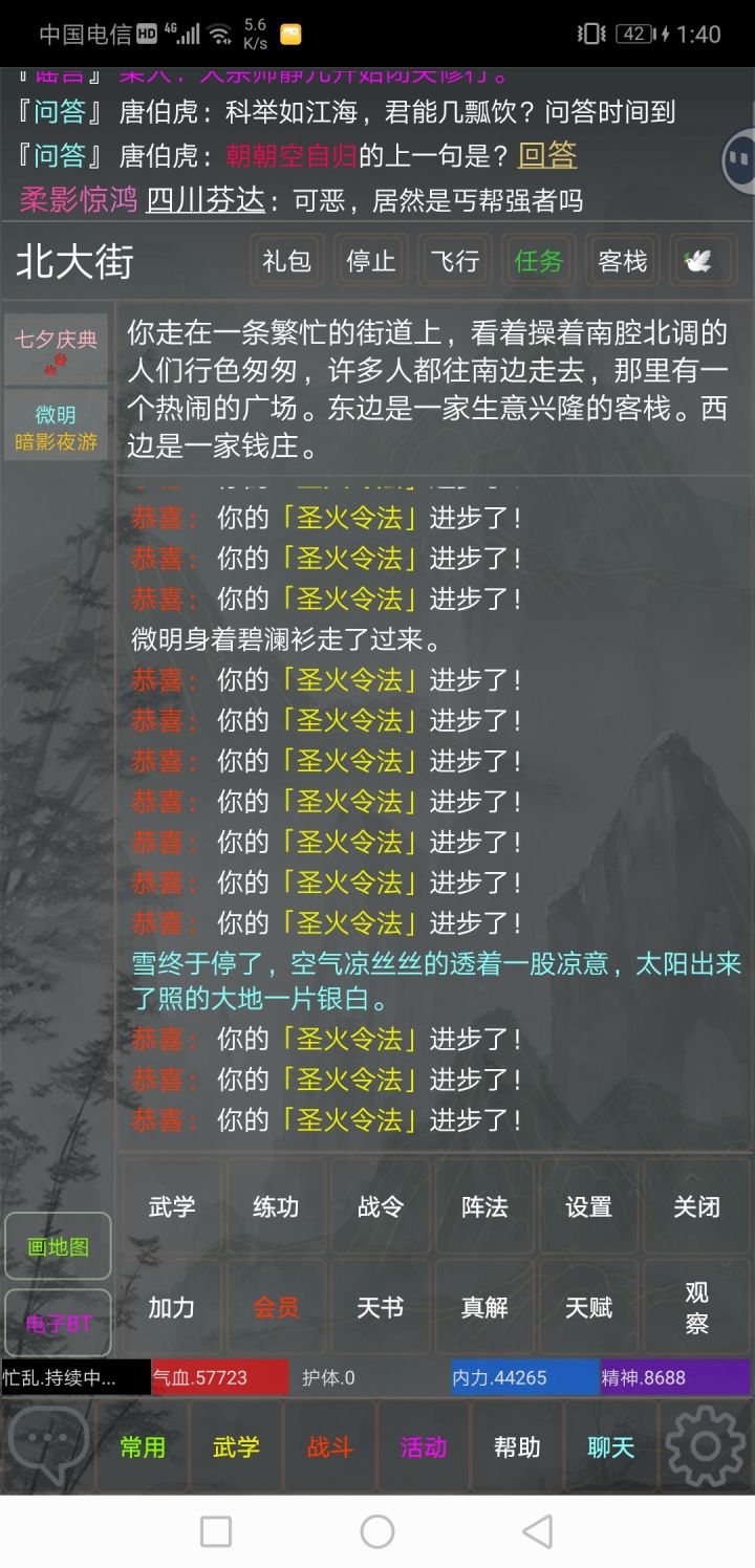 刚刚才测试的文字游戏,mud游戏,好玩。难以忘记,也算是,又重新回归了,正好赶上测试,刚进游戏,活动很多,红包发放。礼包发放,正是入坑的好时候。设计人性化,操作简单。任务多,副本多。玩家多,抢红包,要看手速。这个游戏,虽然是文字,但是剧情复杂,像小说一样,门派多,武功多。很值得休闲养老,消磨时间。哈哈,开心就好!