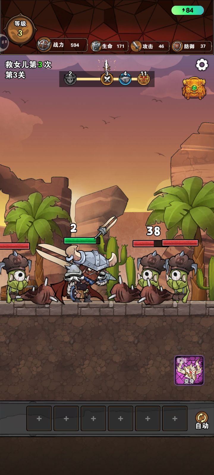 有些无趣的刷宝类游戏,战斗完全自动化,有肉鸽三选一选项,但对战斗影响不大,除了攻击力,其他属性都是辣鸡。同一关卡内不同波次敌人有数值差异,可以明显感觉到战斗吃力,通关需达到战力最低标准,否则就要重复反复刷。