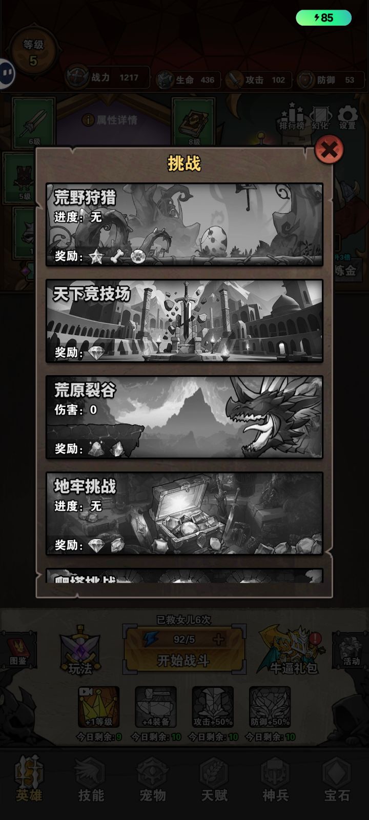 除了常规推关,其他玩法都需要开启关卡数来解锁,战力卡得比较死,解锁节奏很慢,一直处于反复刷关卡的无限循环中。