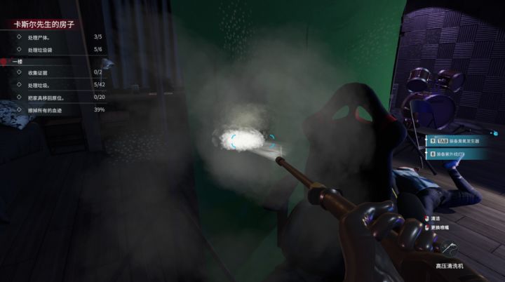 序章版本给的这个清洁任务是正式版章节6的内容,所以会是一个面积比较大的案发现场,需要清理的区域非常多,但是能体验到比较全面的清洁工具。