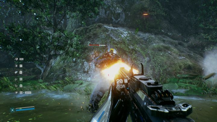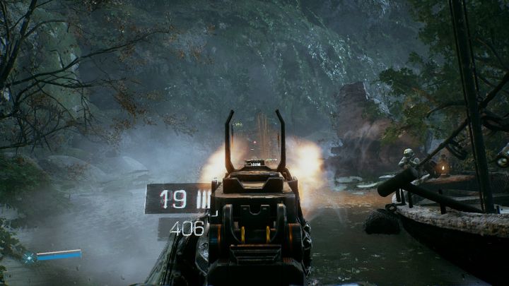 说到融合其他类型游戏的要素,就必须提到本作丰富的动作游戏要素。由于FPS游戏毕竟还是以射击为主,人物很少有能够做出各种华丽操作的设定,而且第一人称虽然增加了玩家的代入感,但实际上也让各种华丽动作的实现有了一定的门槛。《光明记忆:无限》在动作这方面下了很多功夫,加入了很多动作游戏的要素,比如颇具观赏性和操作感的特殊移动方式(蹬墙跳、牵引器的钩索移动等),特殊的攻击方式更是让玩家能感受到开无双乱杀的爆棚快感,枪械射击与近战武器的挥砍攻击结合在一起产生极为炫目的视觉效果以及打击感十足的战斗反馈。