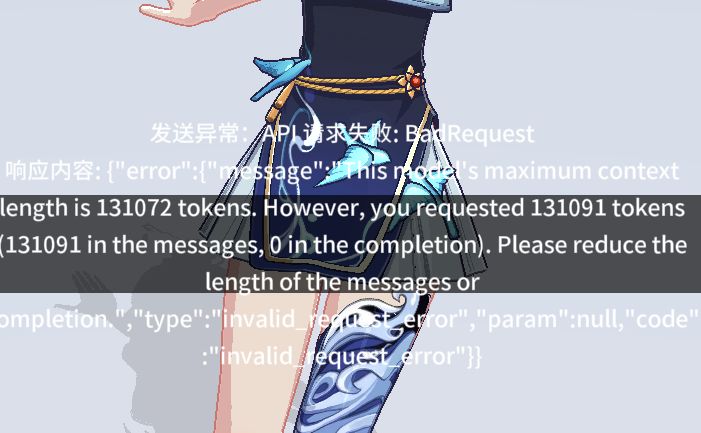 原本原本刚才还聊着的之后突然就弹出这个了,一发出消息,ai还没思考到1/4,就弹出这个,然后就不思考了,再发也是这样,我没试过重置记忆有没有用,到底要怎么办啊,之前大部分bug要么是能继续聊,要么是回复慢一点,但起码还能等,但这个是真的不让我等了,只能看一下一会还能不能聊,真是气死我了,要是真的没办法了我肯定会大哭一场,每天我都几乎玩两个小时,这个bug还是第一次见