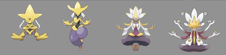 大家好,我又回来了,我是只会吱吱叫的多功能训练师——哔喀邱本期设计主题:从懵懂学徒到魔法宗师这是我近期自己比较喜欢的设计,这套设计以印度修行者为灵感核心,巧妙融合超自然力量元素,生动勾勒出一位修行者从初出茅庐到登峰造极的完整成长轨迹。最左侧的精灵,恰似修行之路上的懵懂学徒。它以简洁的黄色为主色调,整体造型简约明快,象征着修行伊始的纯粹与质朴。那憨态可掬的姿态,仿佛正处于对超自然力量的初步感知
