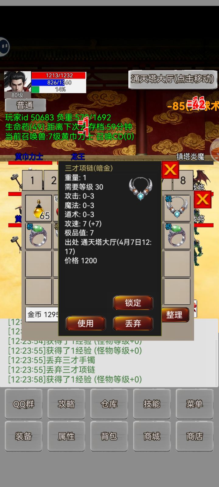 温馨提示:战士传说3代因为刚刚上架,广告申请中,暂时无法观看广告,可以安装群文件里的独立安装包,和taptap上的版本一样,能看广告能通过云存档互通1.极品值加八紫色装备回城市商店买药NPC处,兑换金条后出售,可获得金币100万(不要直接出售装备) 。2.祈福油所有变异教主都出。 3.经验套装:五行三件套:五行项链,手套,戒指,效果为提升怪物等级十级。六合三件套:六合项链,手套,戒指,效果