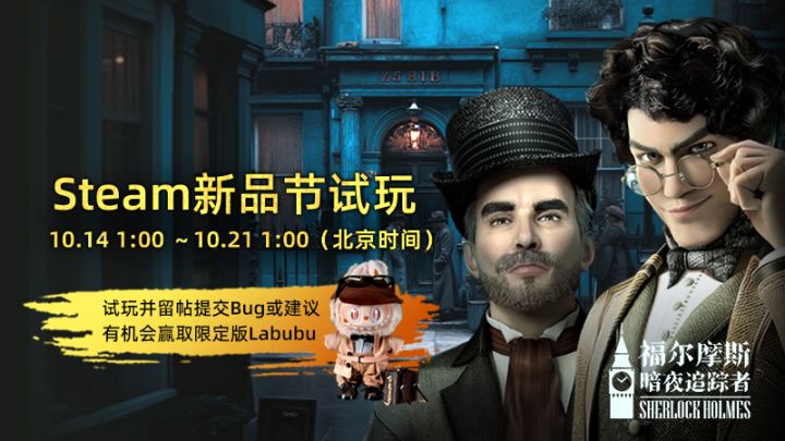 各位侦探: 《福尔摩斯:暗夜追踪者》现已参加2025年Steam秋季新品节!继德国科隆国际游戏展(Gamescom 2025)展区引爆关注后,我们终于迎来与全球玩家深度互动的契机,如果您试玩游戏并提出宝贵意见有机会获得福尔摩斯版LABUBU。关于此试用版 游戏目前已免费开放下载Demo,您现在即可点击下载【由于steam的审核原因CN区已锁,但其他地区使用中文的玩家仍旧可以下载中文试玩版本】